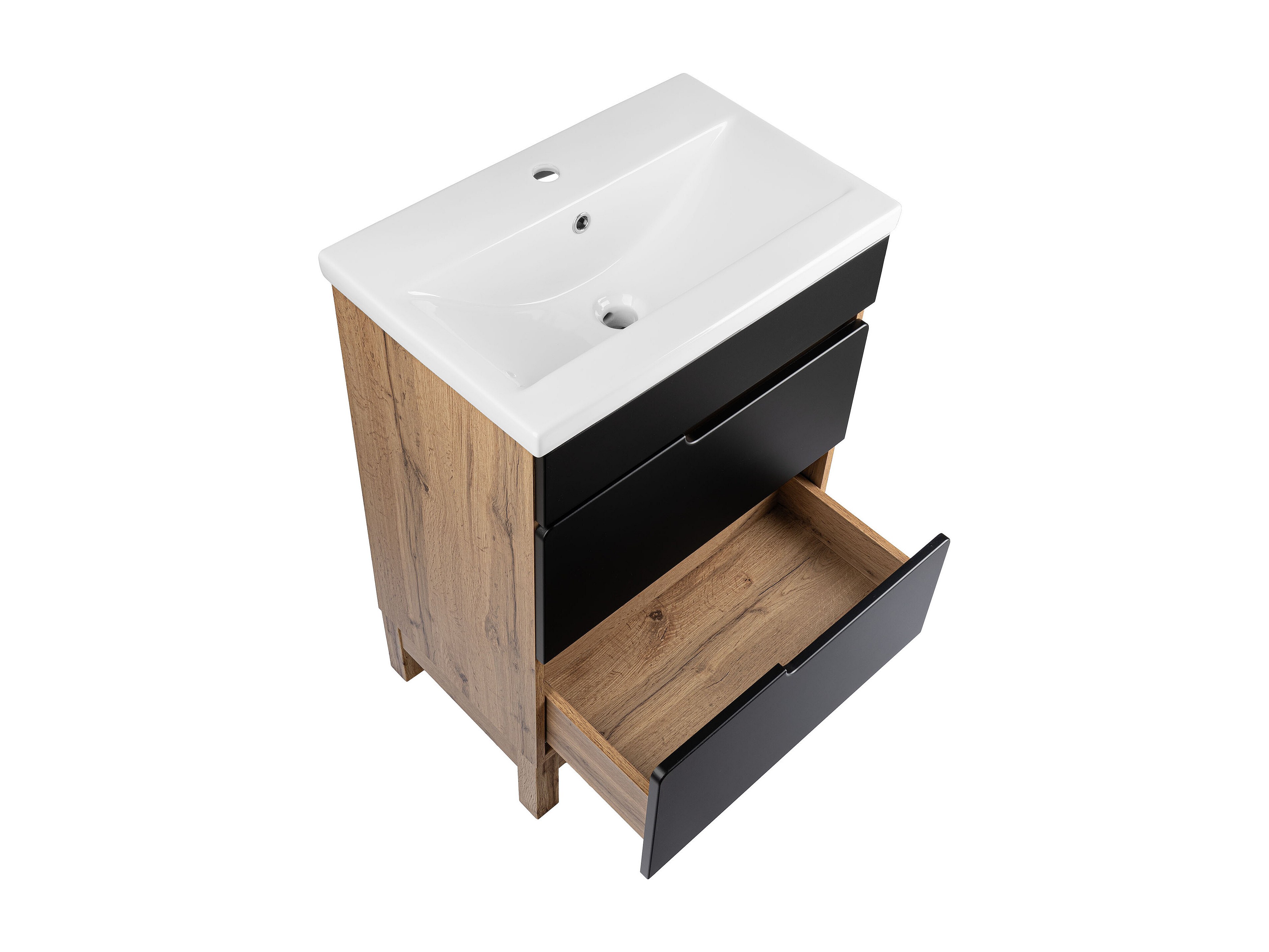 Badkamerset 60 cm Alma Halve kolom Eiken Wotan / Mat zwart