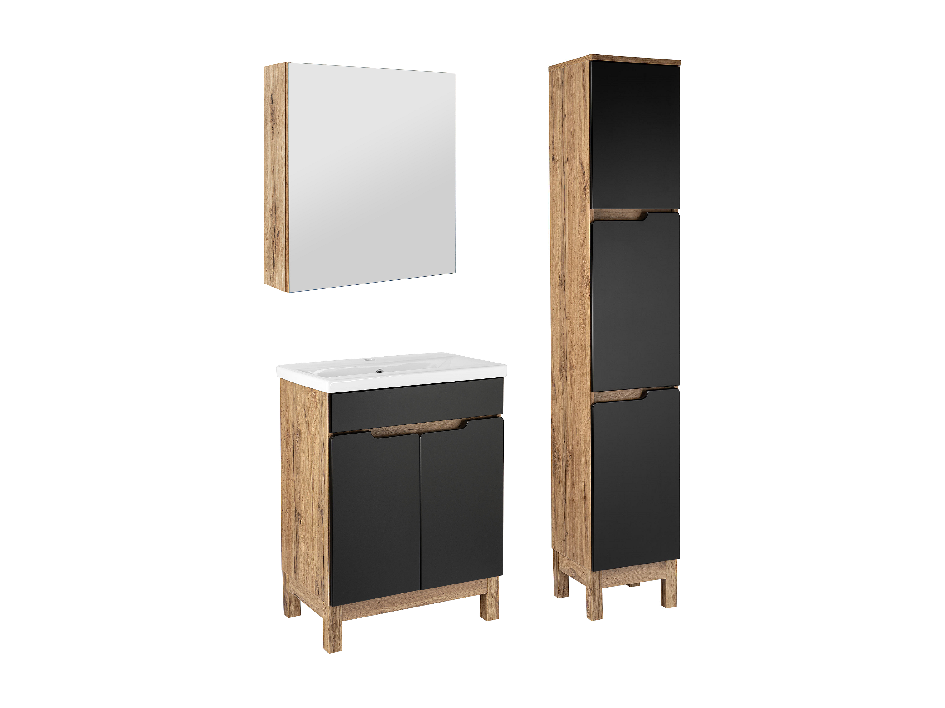 Badkamerset 60 cm Alma Kolommen Kast met spiegel Eiken Wotan / Mat zwart