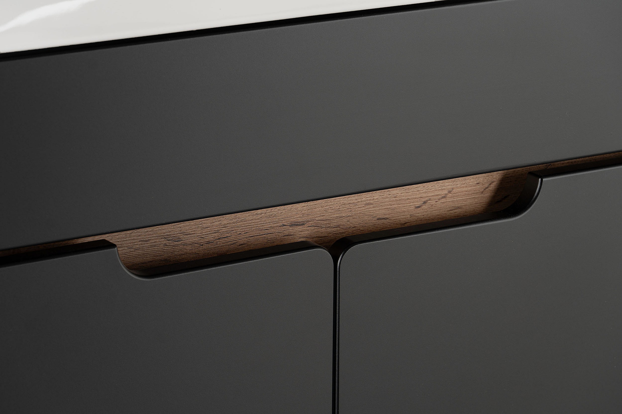 Zwarte badkamerset 60 cm Kast met blad Wastafel Kolom Geribbelde fronten Arcos