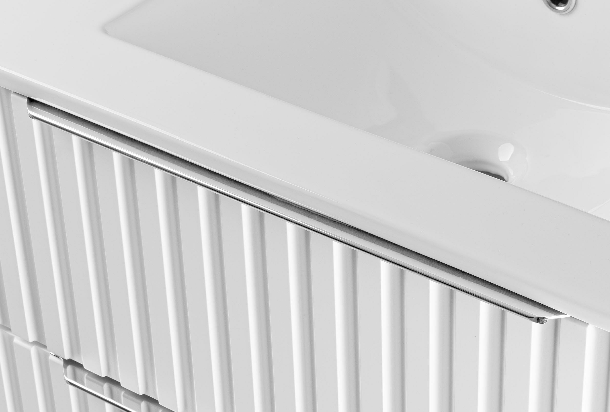 Witte badkamerset 60 cm Kast met wastafel Kolom Geribbelde fronten Arcos