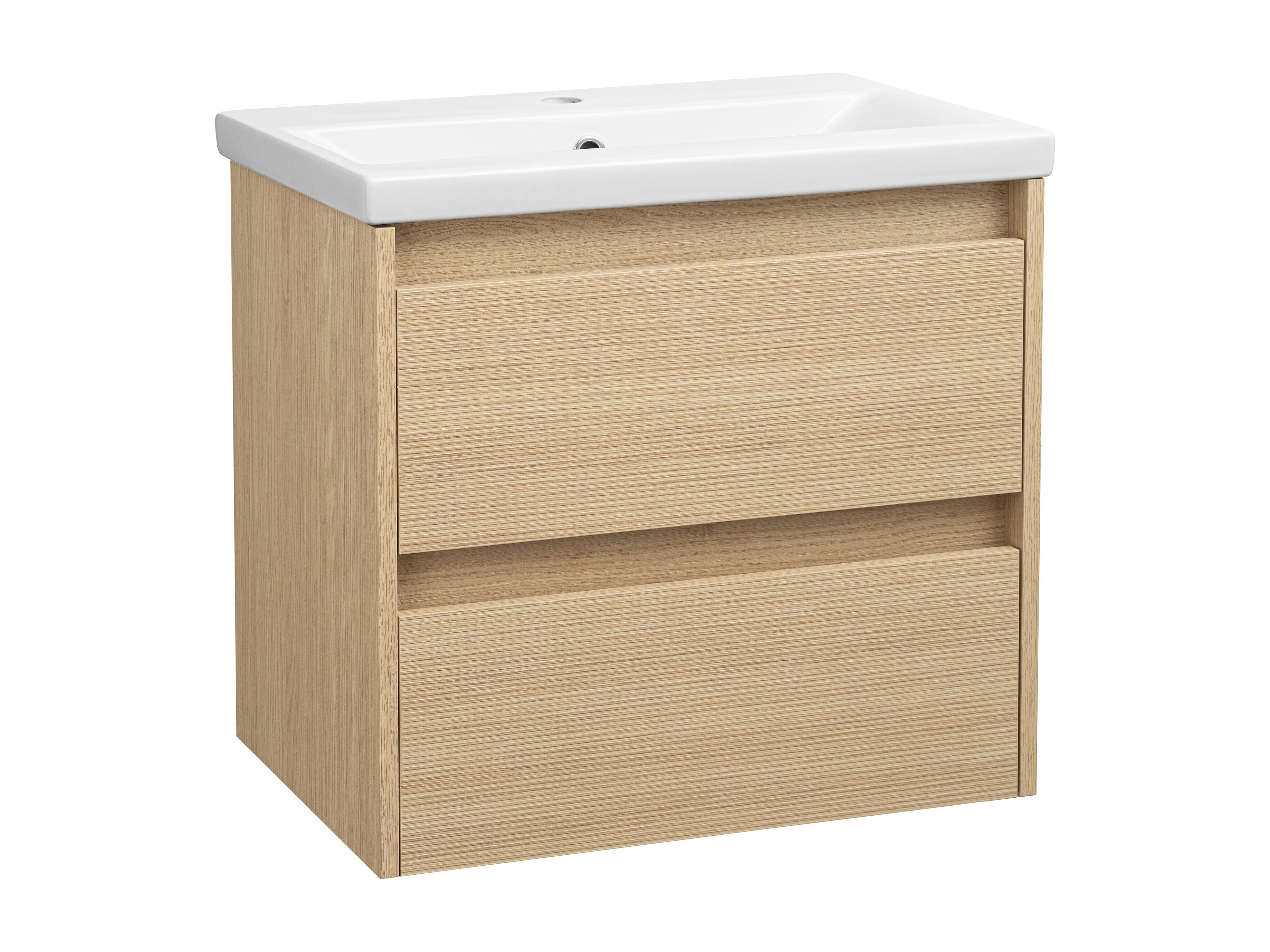 Geribbeld hangmeubel met inbouwwastafel en kolomkast - Lichte houtkleur - 60 cm - ZEVARA