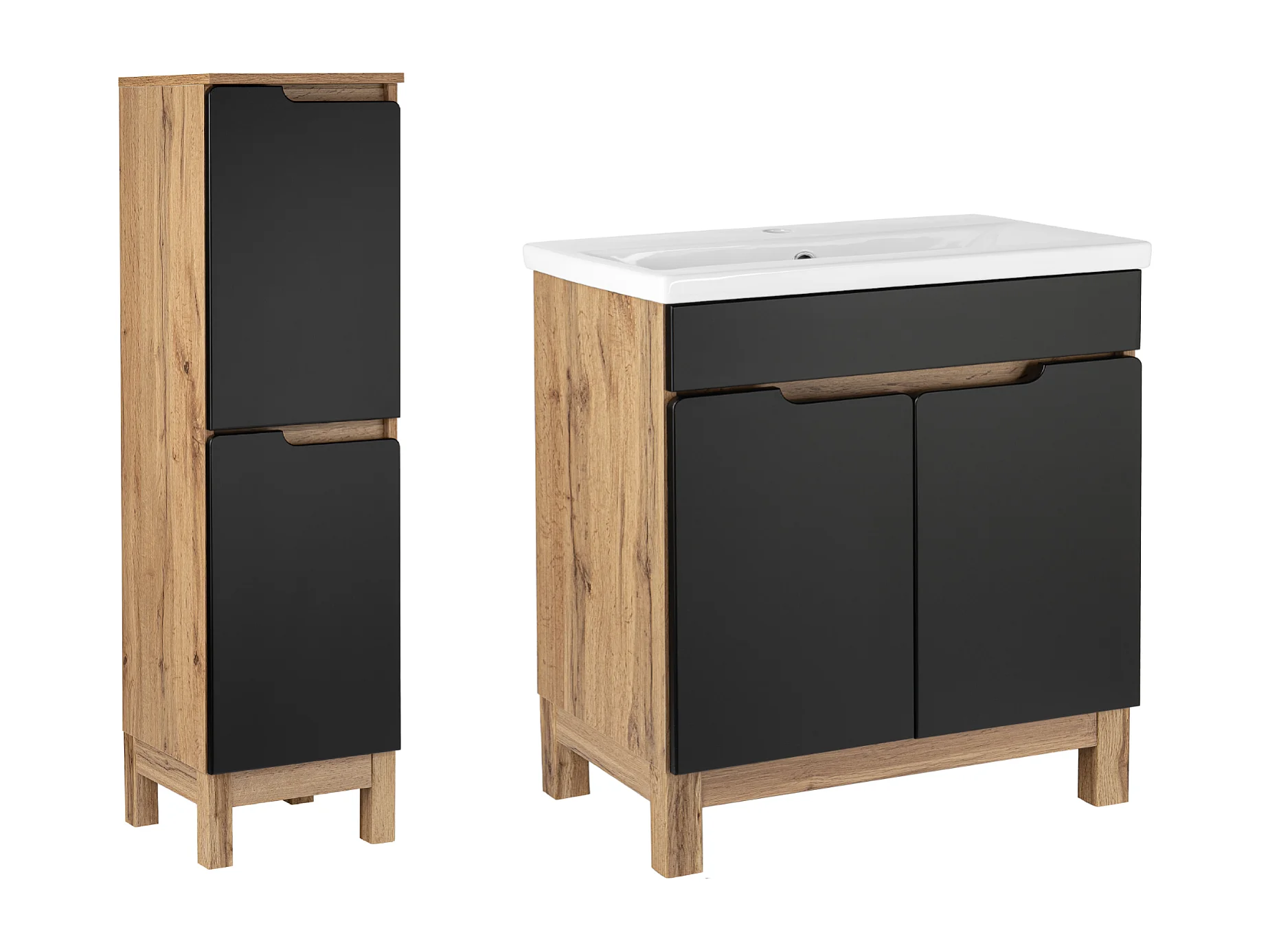 Badkamerset 80 cm Alma Halve kolom Eiken Wotan / Mat zwart