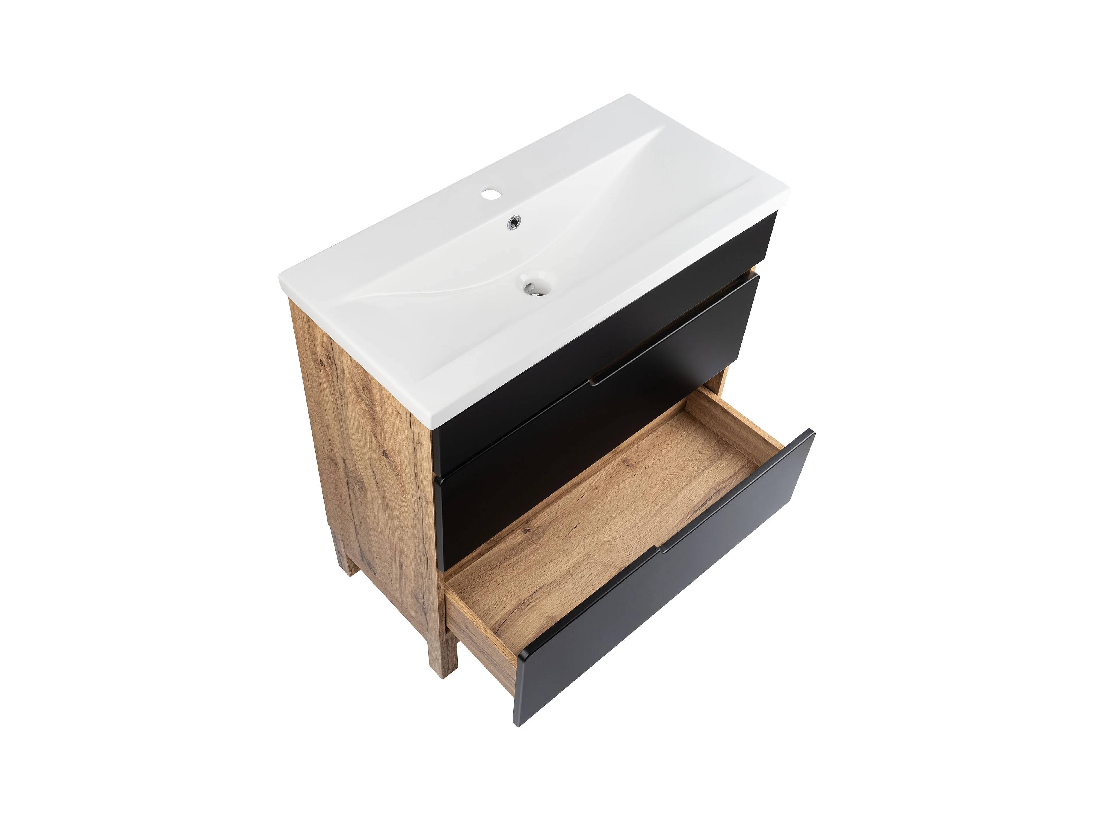 Badkamerset 80 cm Alma Pułupek Eiken Wotan / Mat Zwart