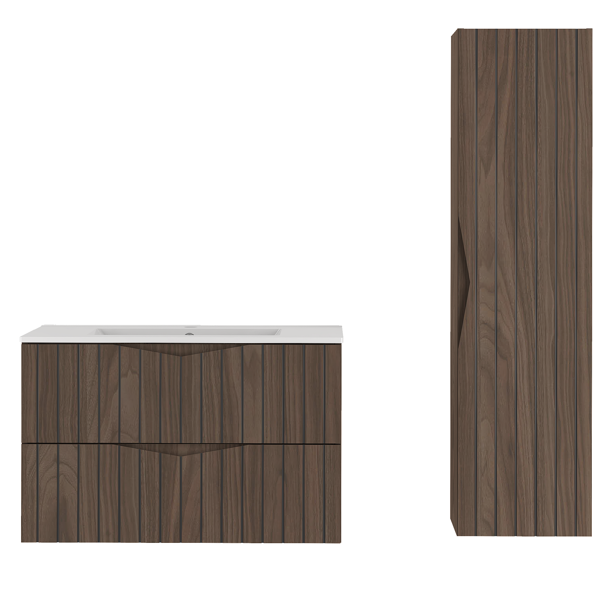 Badkamerset 80 cm Kast met wastafel Kolom Geribbelde fronten Eiken Noten Stella