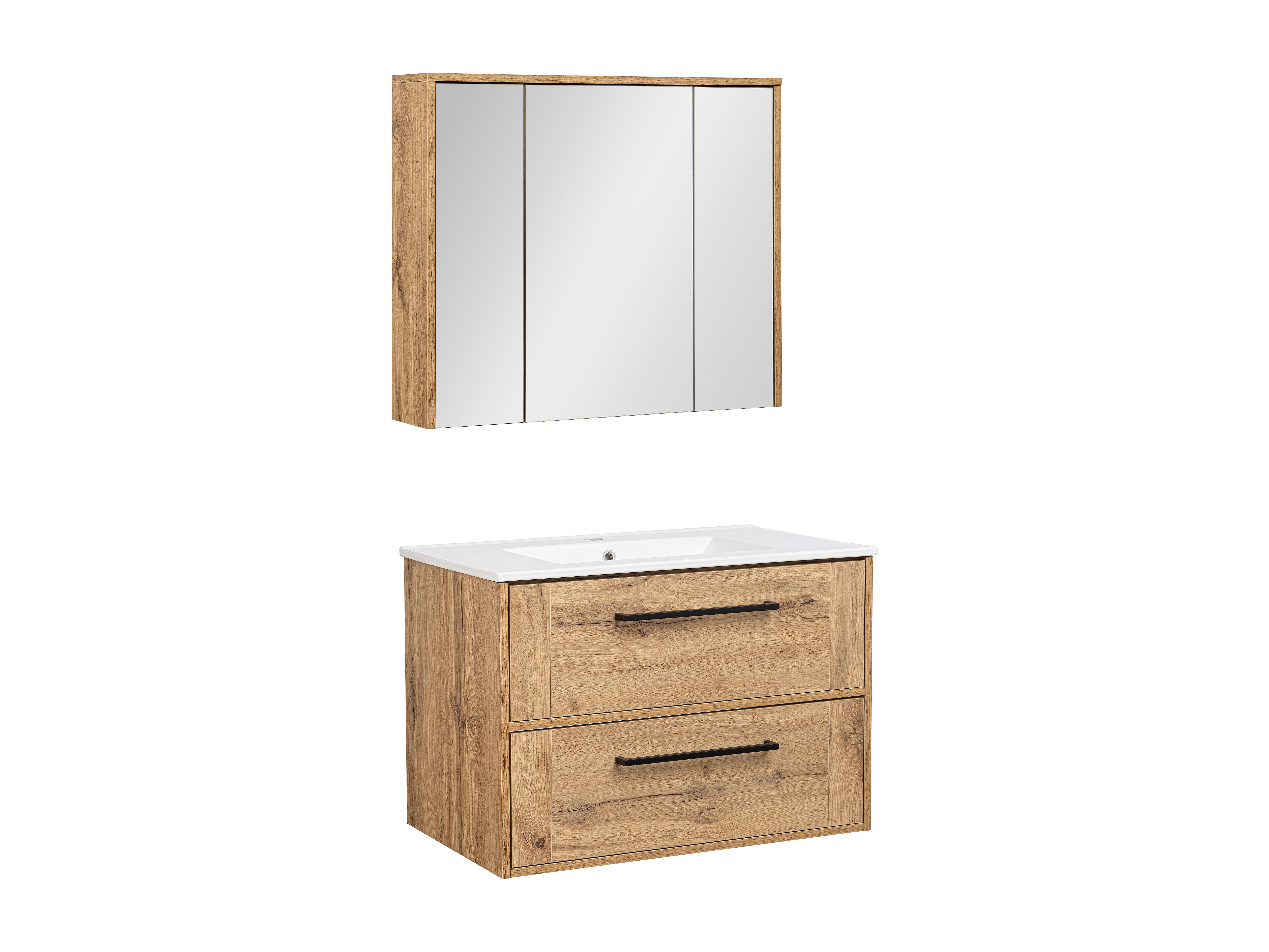 Badkamerset 80 cm Vivien Wotan Eiken Kast met spiegel