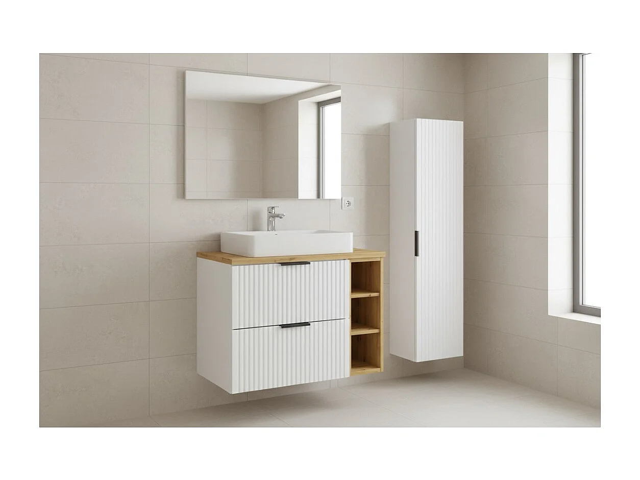 Badkamerset NOXERA 80 cm - Zwevend onderkastmeubel met blad voor wastafel, open nissen en kolomkast