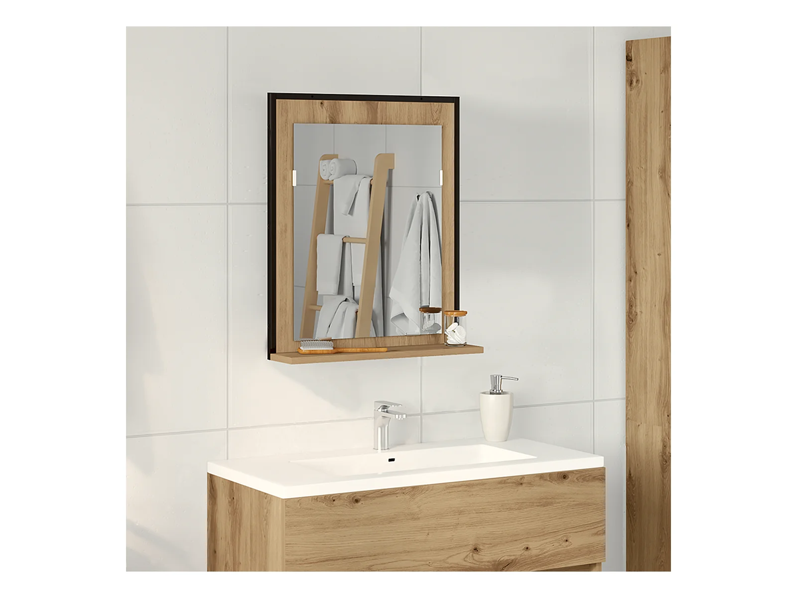 Badkamerspiegel Eiken handgemaakt 50x12x60 cm in bewerkt hout