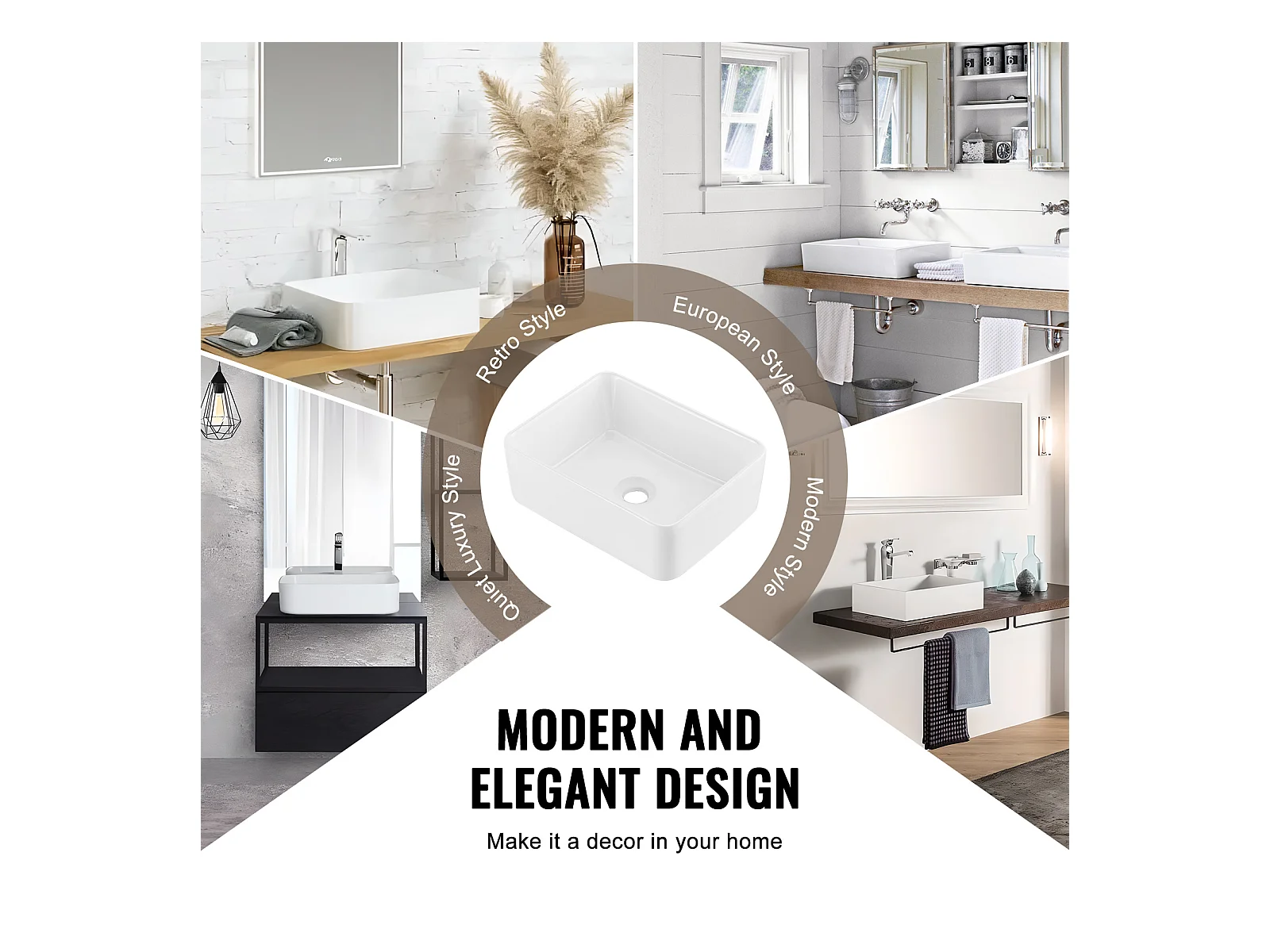 Badkamerwasbak SucceBuy, 41 x 30 cm, Modern Wit, voor Badkamer, Hotel, Toilet, Camper