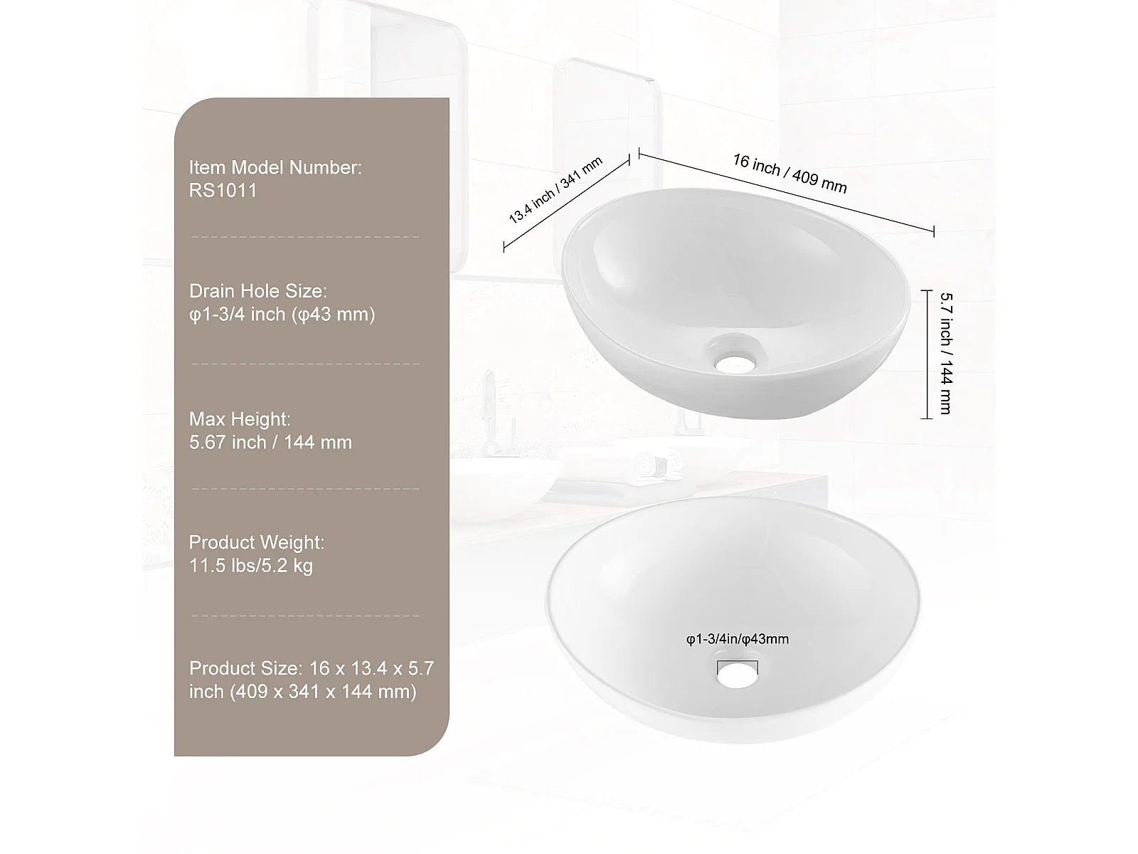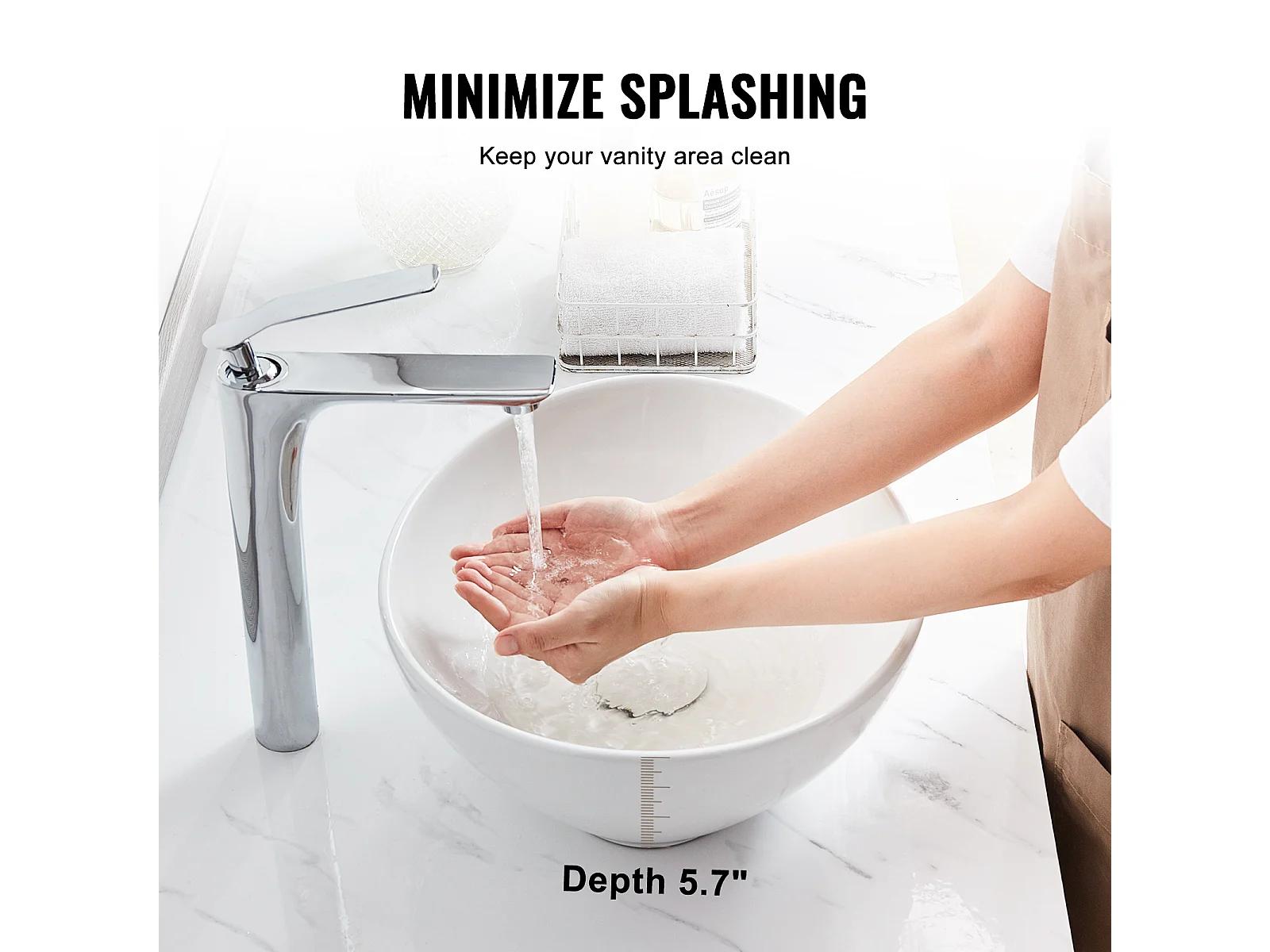 Badkamerwasbak SucceBuy, 41 x 34 cm, Modern Wit, voor Badkamer, Hotel, Toilet, Camper