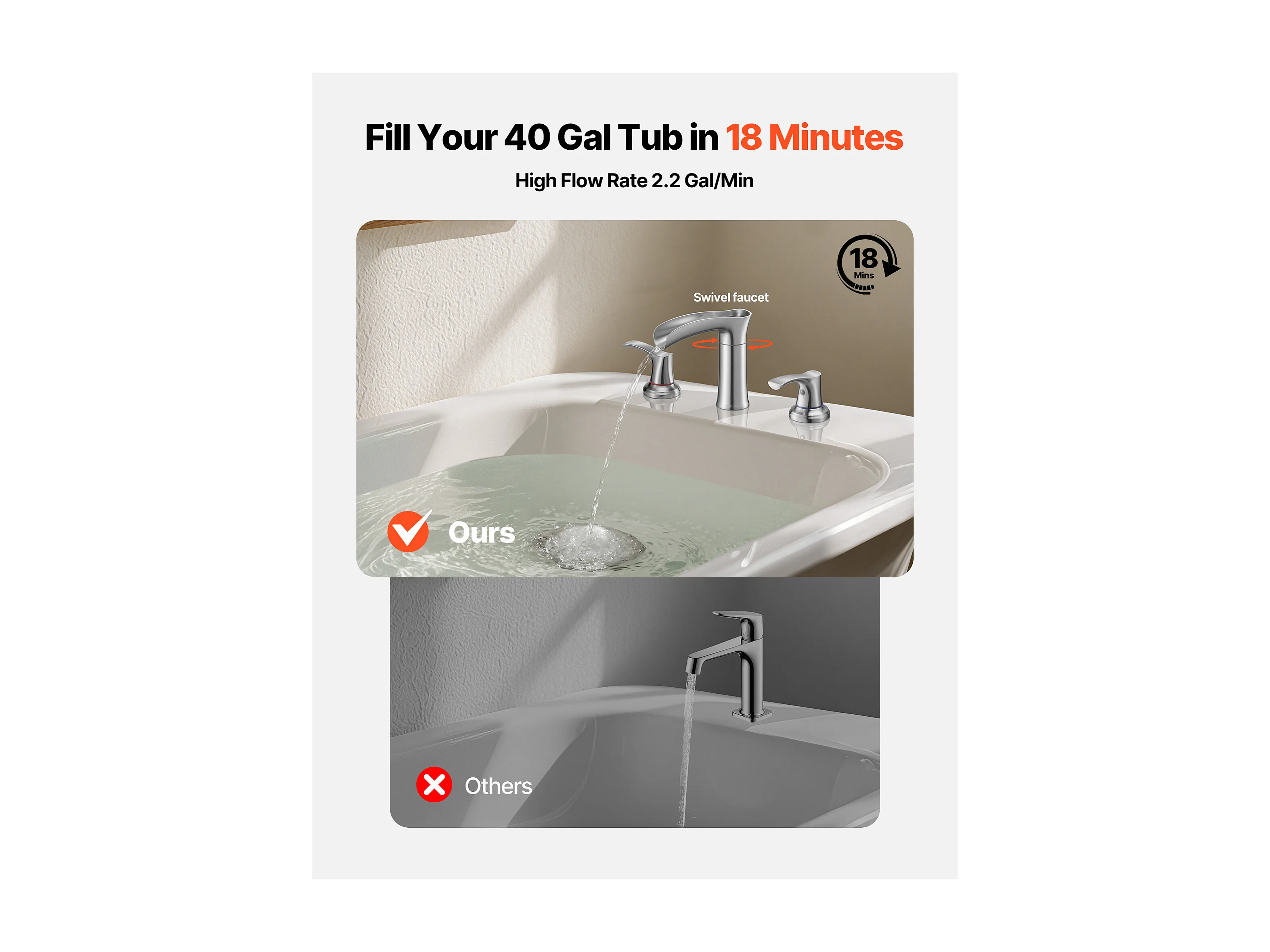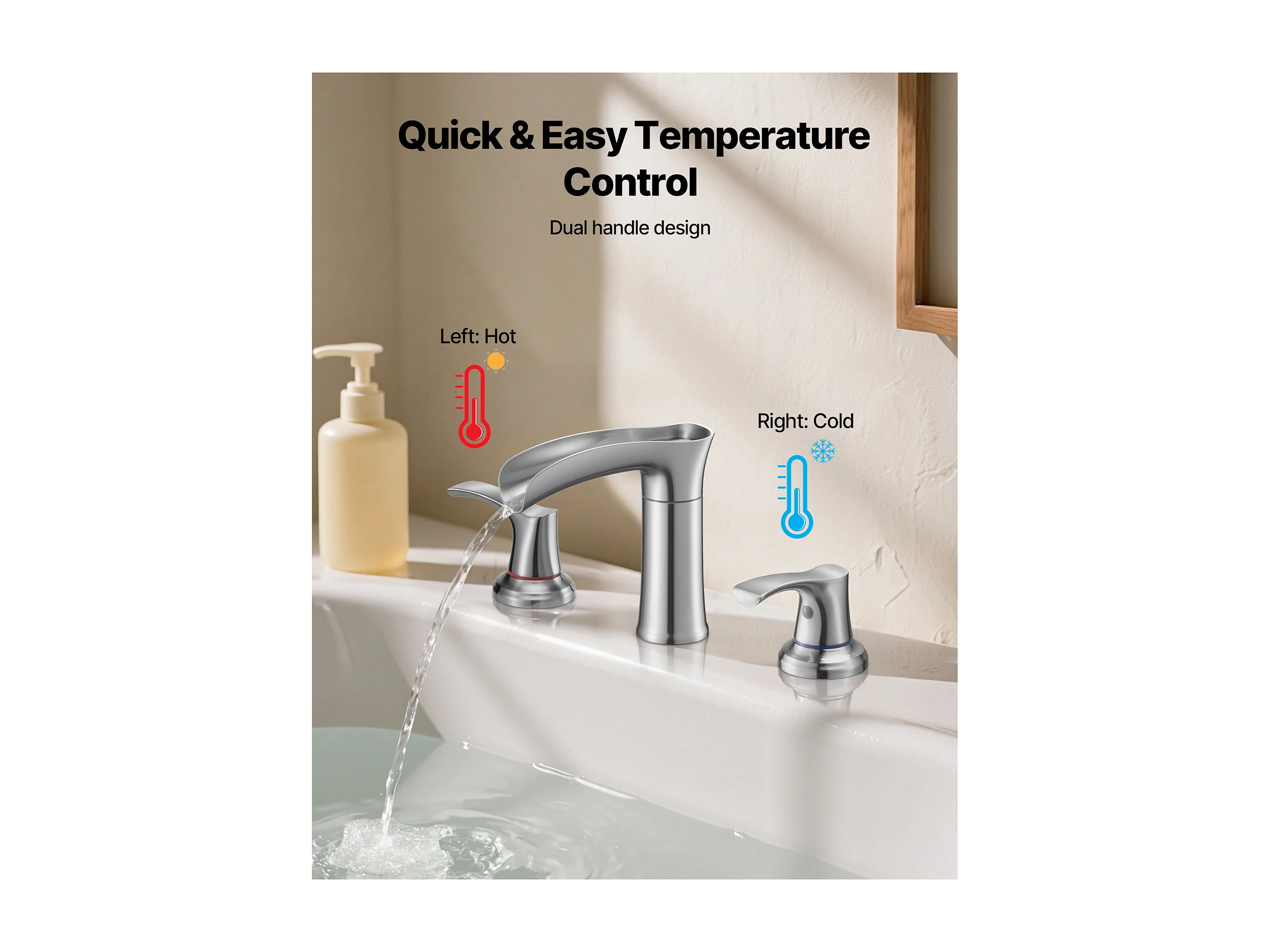 Badkuip Mengkraan Romeins SucceBuy, Badkuip Kraan Waterval, Set van Kraanwerk 3 Gaten met 2 Handgrepen, Dubbele Waterstroom, Op het Aanrecht Montage