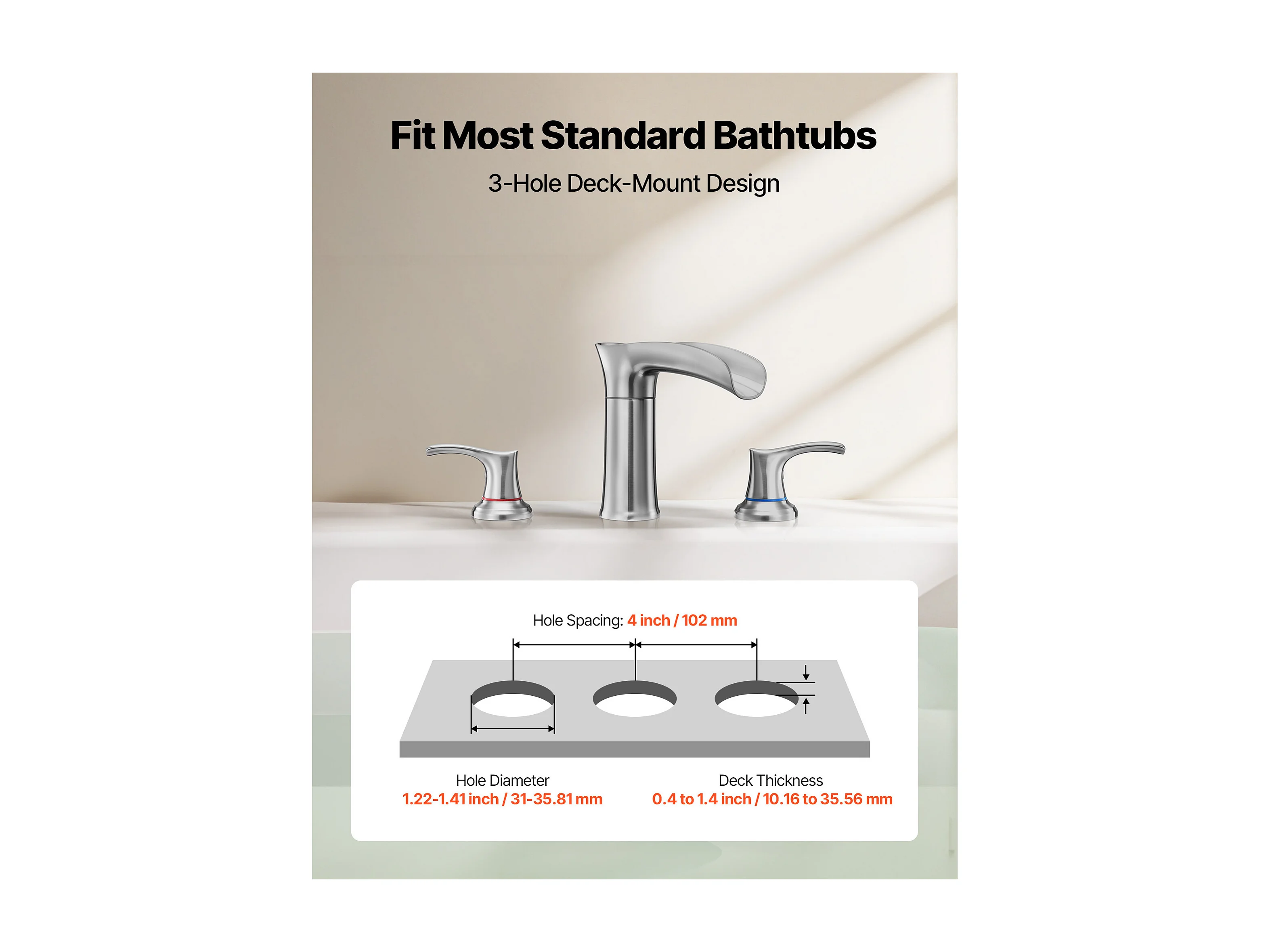 Badkuip Mengkraan Romeins SucceBuy, Badkamer Kraan Waterval, Set van Kraanwerk 3 Gaten met 2 Handgrepen, in Zinklegering, Op het Aanrecht Montage