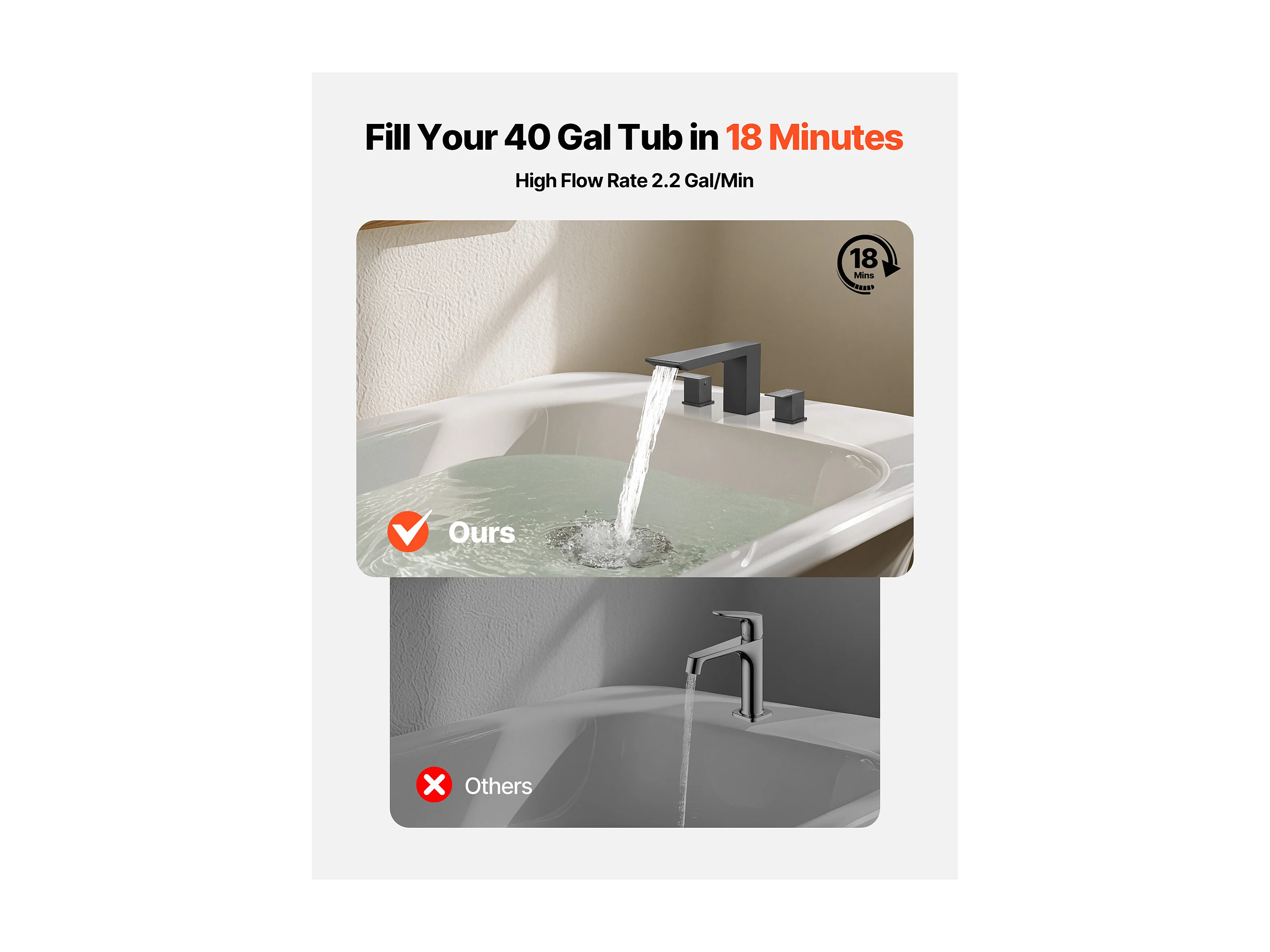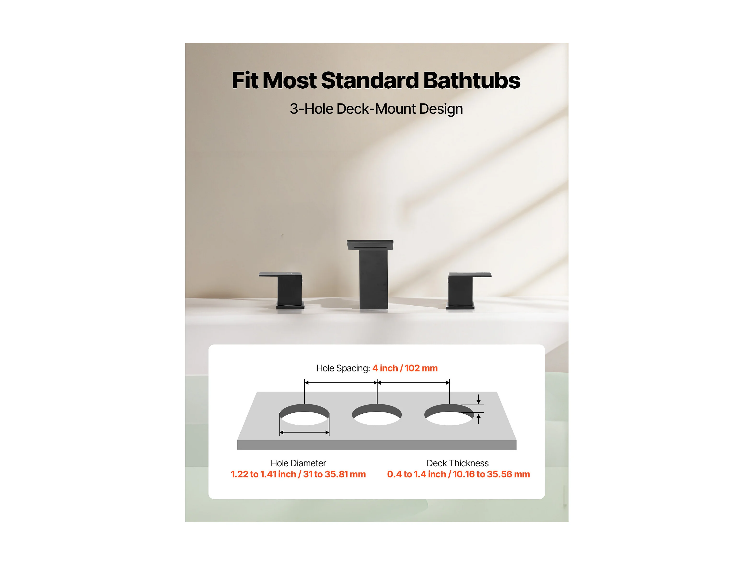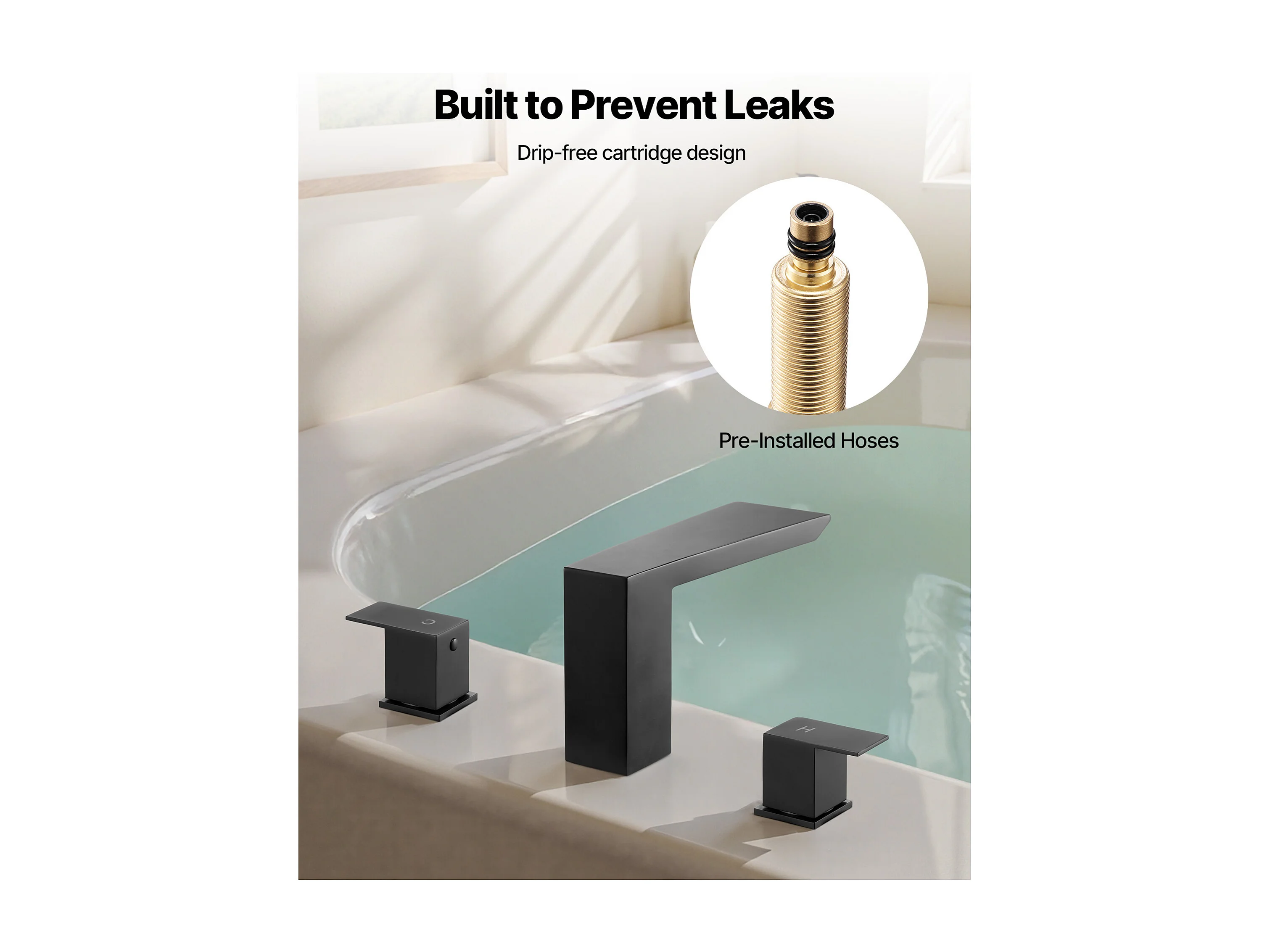 Badkuip Mengkraan Romeins SucceBuy, Badkuip Kraan 3 Gaten met 2 Handgrepen, Set van Badkamer Kraanwerk in Roestvrij Staal, Mat Zwart