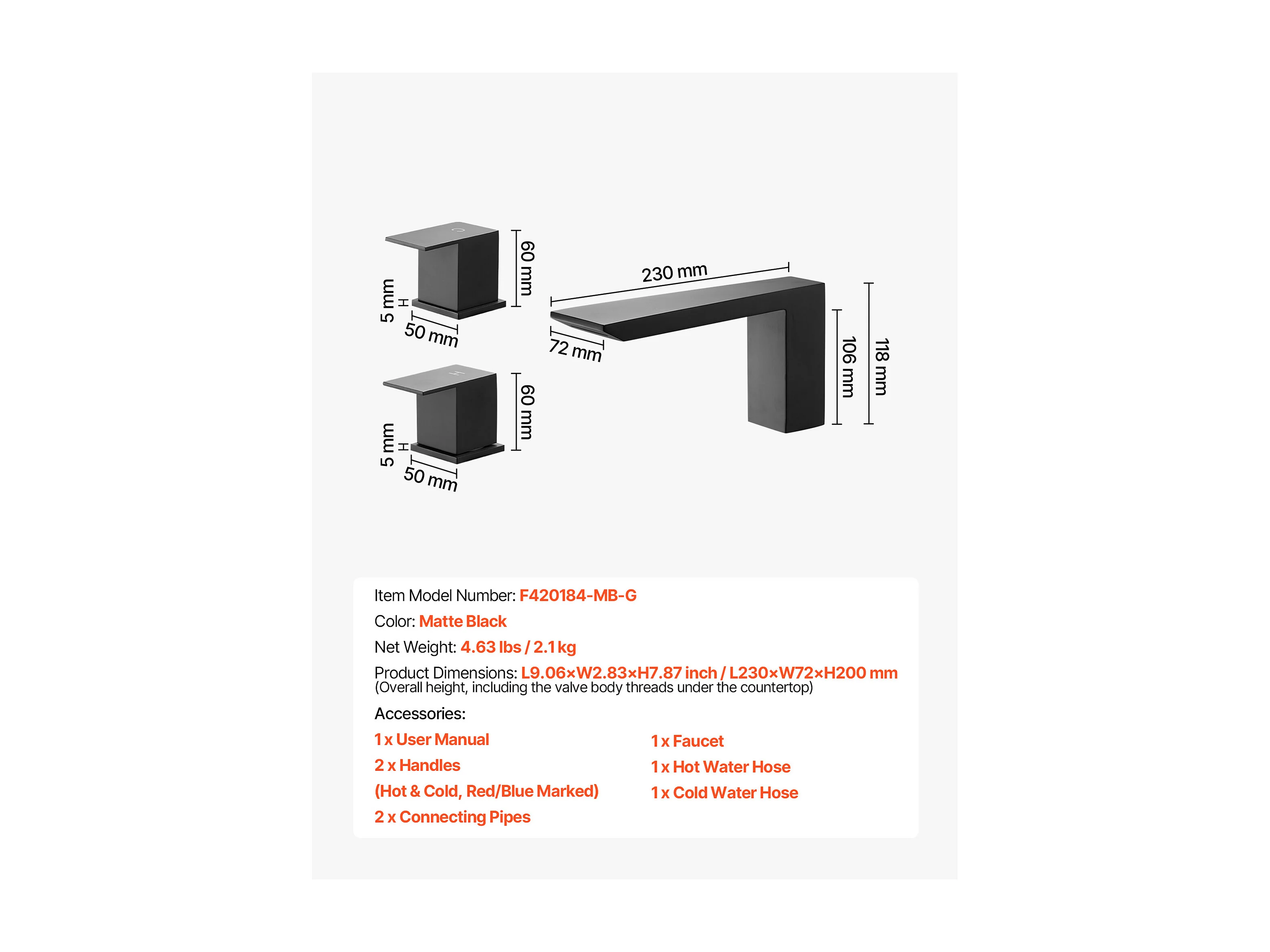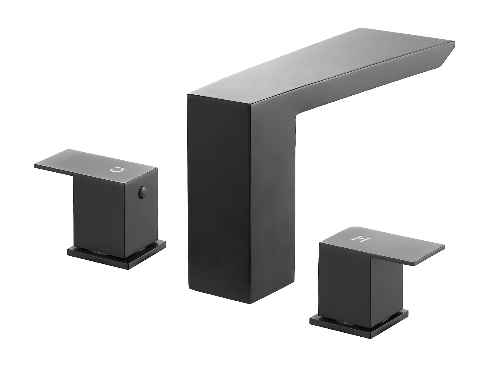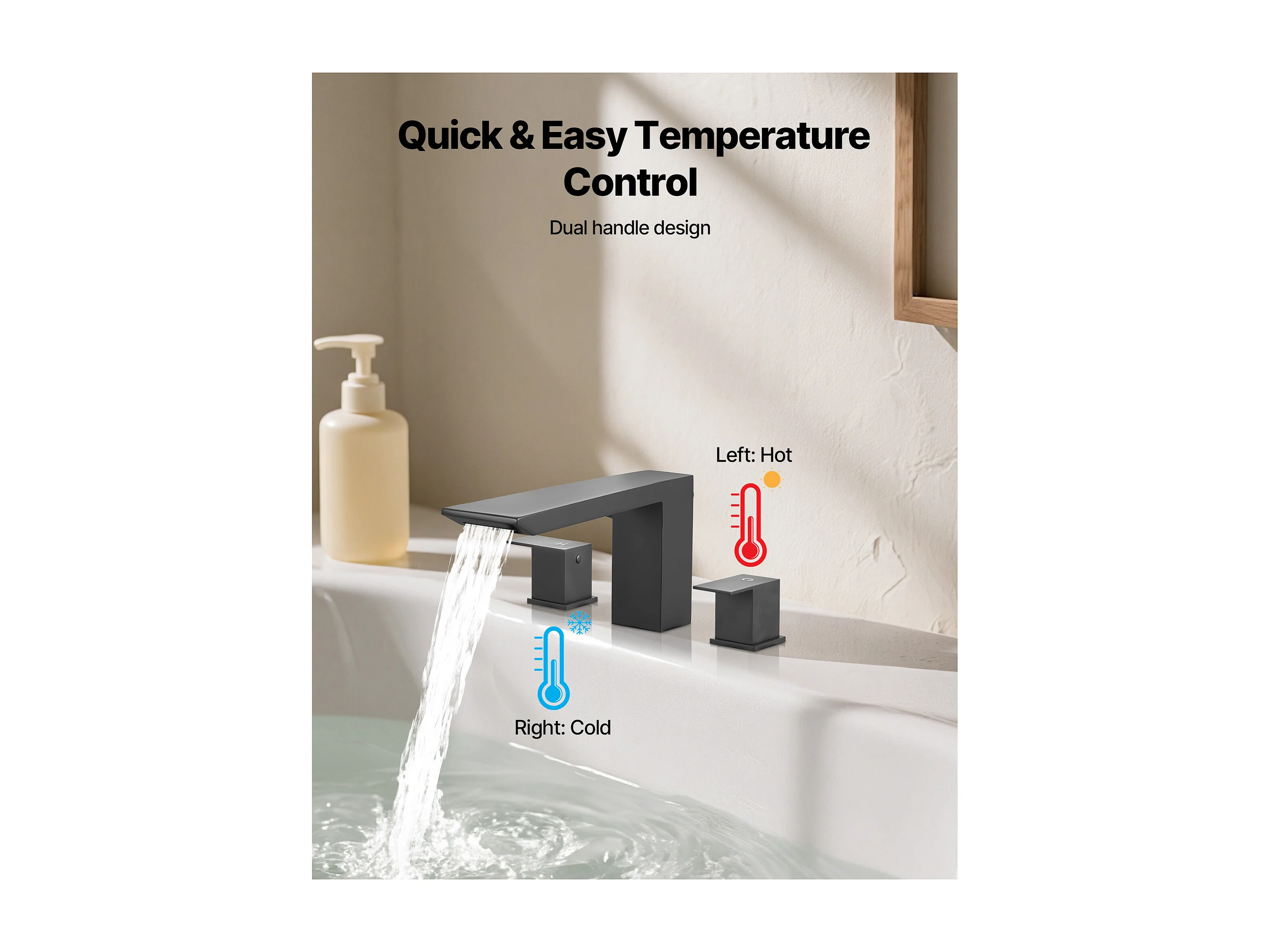Badkuip Mengkraan Romeins SucceBuy, Badkuip Kraan 3 Gaten met 2 Handgrepen, Set van Badkamer Kraanwerk in Roestvrij Staal, Mat Zwart