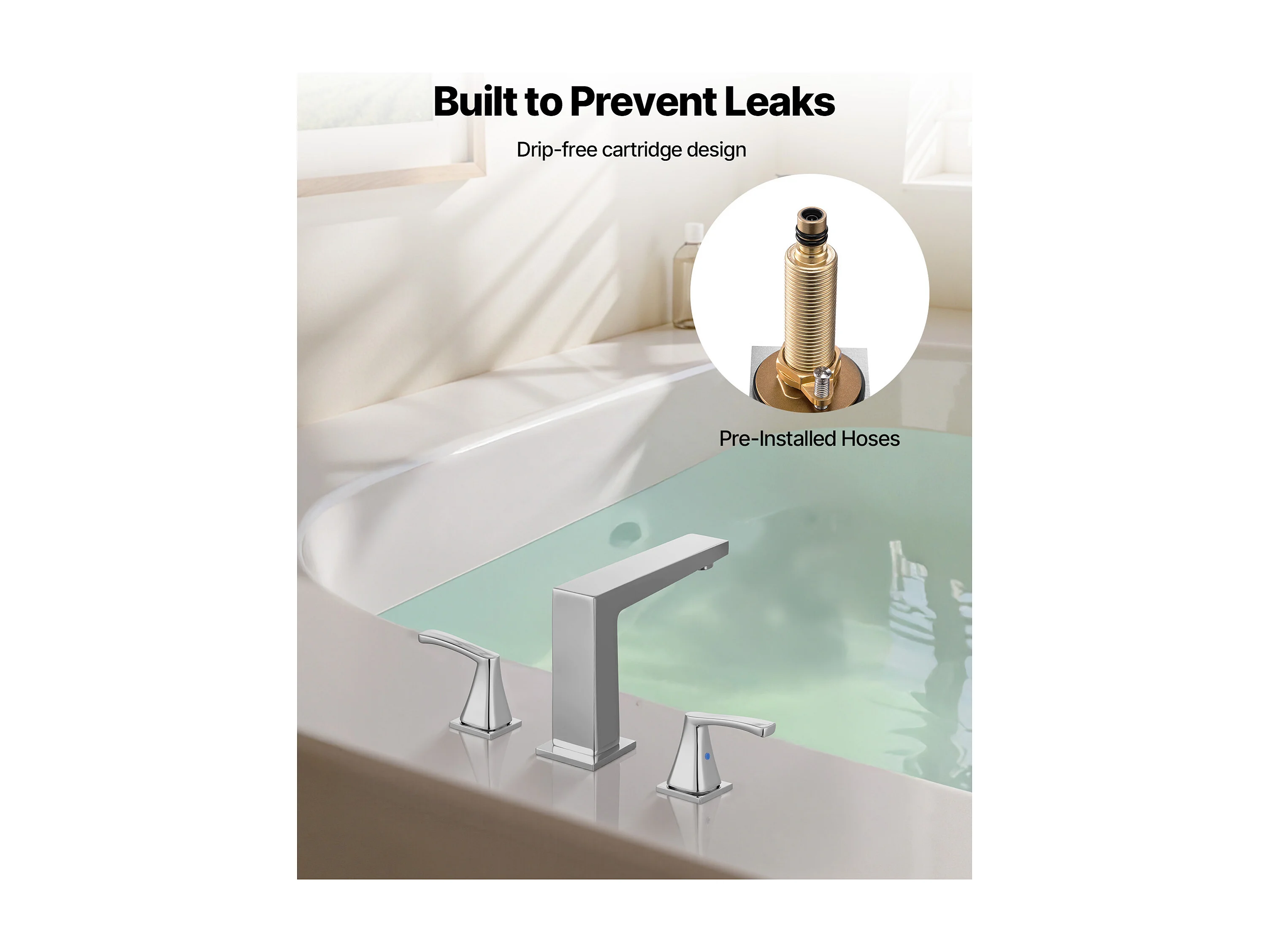 Badkuip Mengkraan Romeins SucceBuy, Badkuip Kraan 3 Gaten met 2 Handgrepen, Set van Badkamer Kraanwerk met Op het Aanrecht Montage, Uitloop in Rechte Hoek
