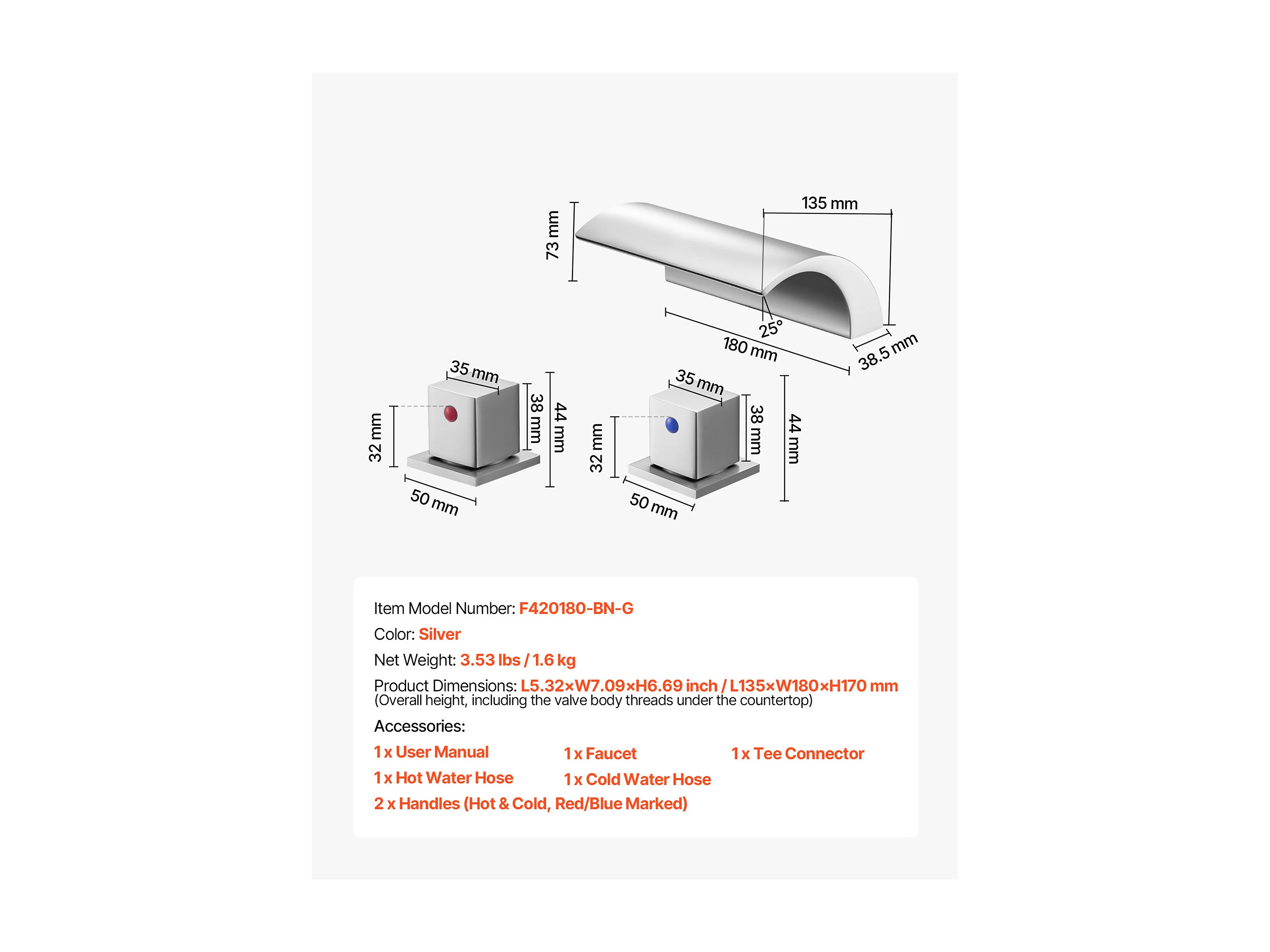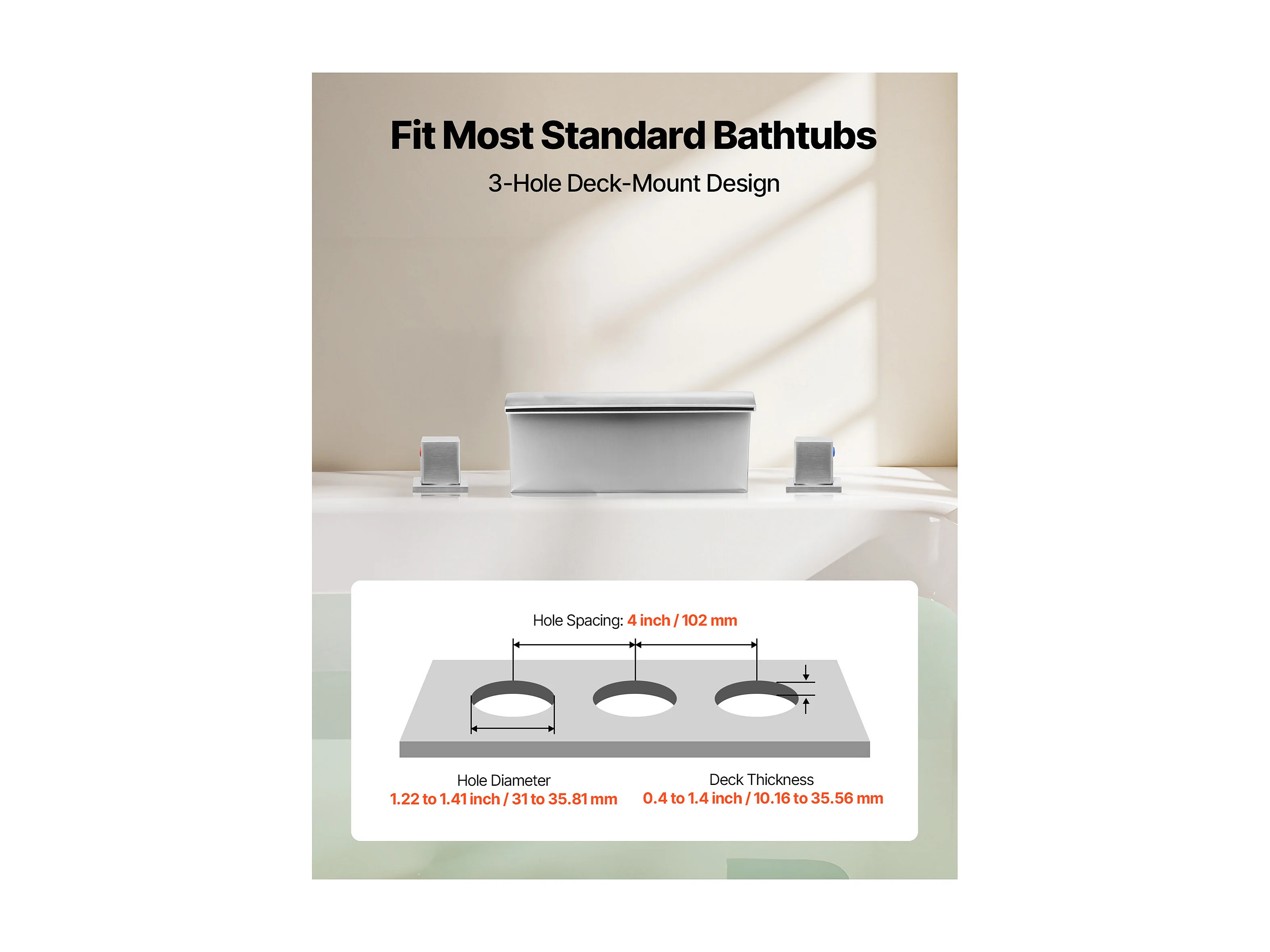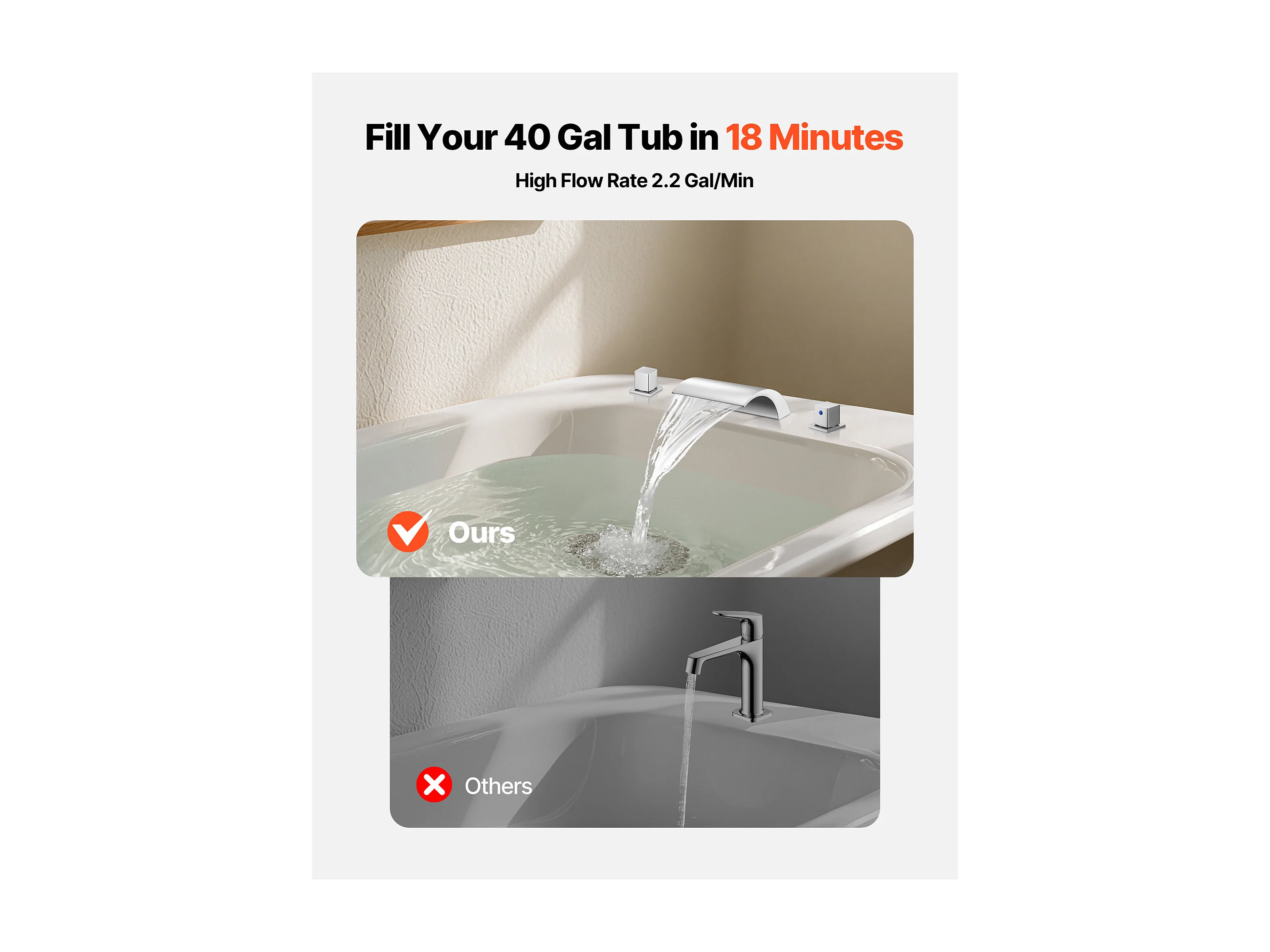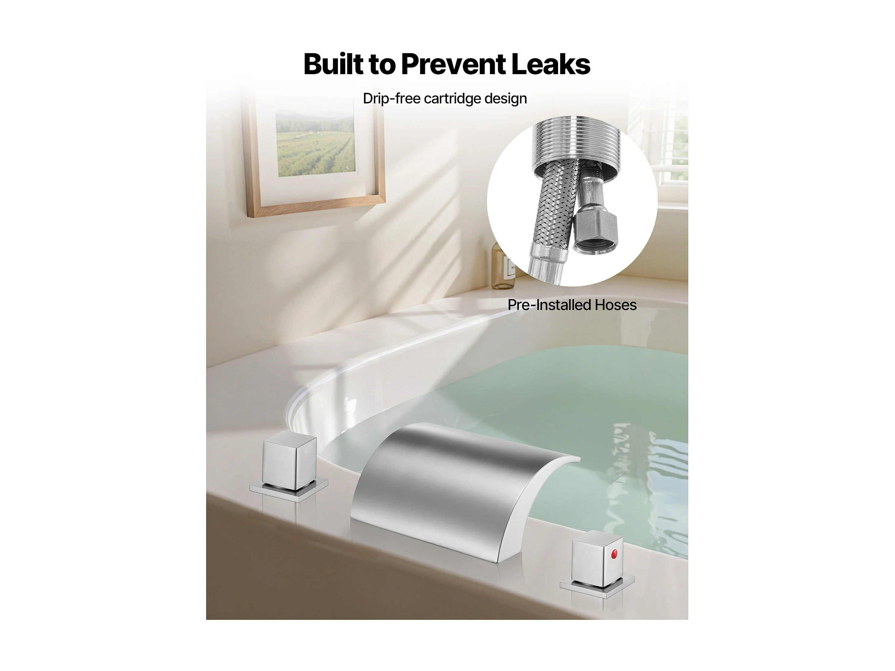 Badkuip Mengkraan Romeins SucceBuy, Badkuip Kraan Waterval, Set van Kraanwerk 3 Gaten met 2 Handgrepen, Dubbele Waterstroom, Op het Aanrecht Montage