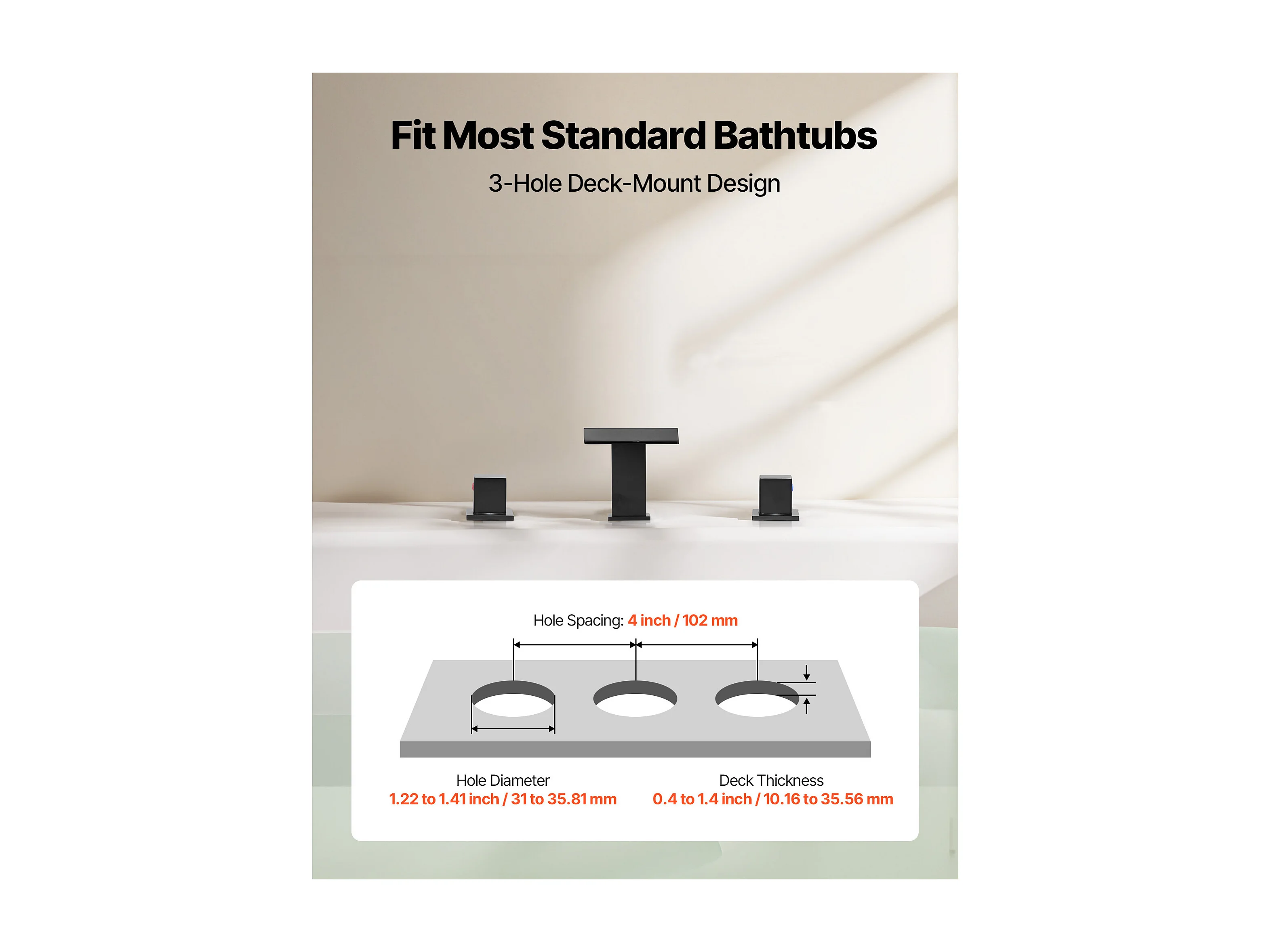 Badkuip Mengkraan Waterval SucceBuy, Badkuip Kraan Romeins, 3 Gaten met 2 Handgrepen, Set van Badkamer Kraanwerk, in Roestvrij Staal