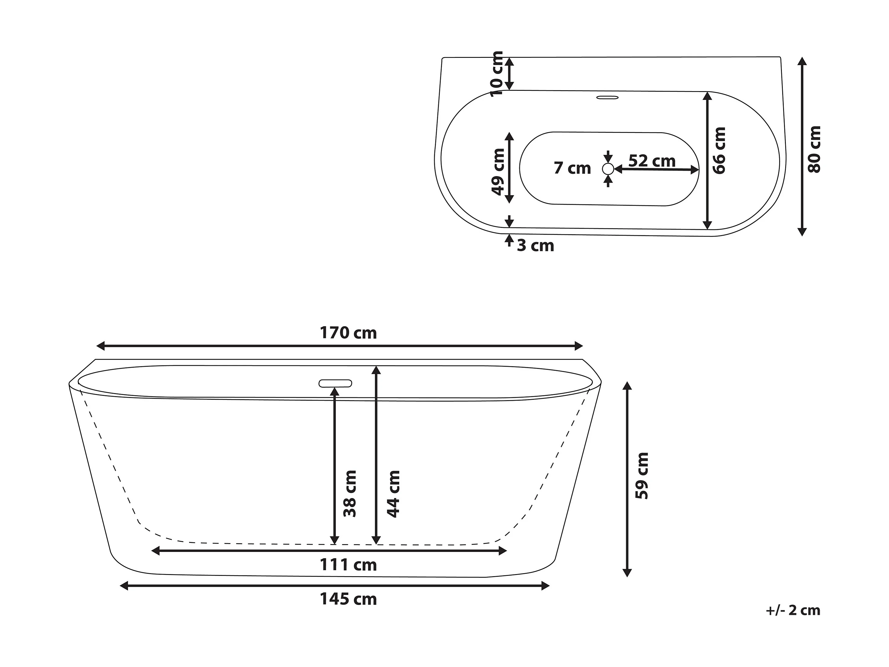 Badkuip HARVEY 170 x 80 cm Zwart/wit