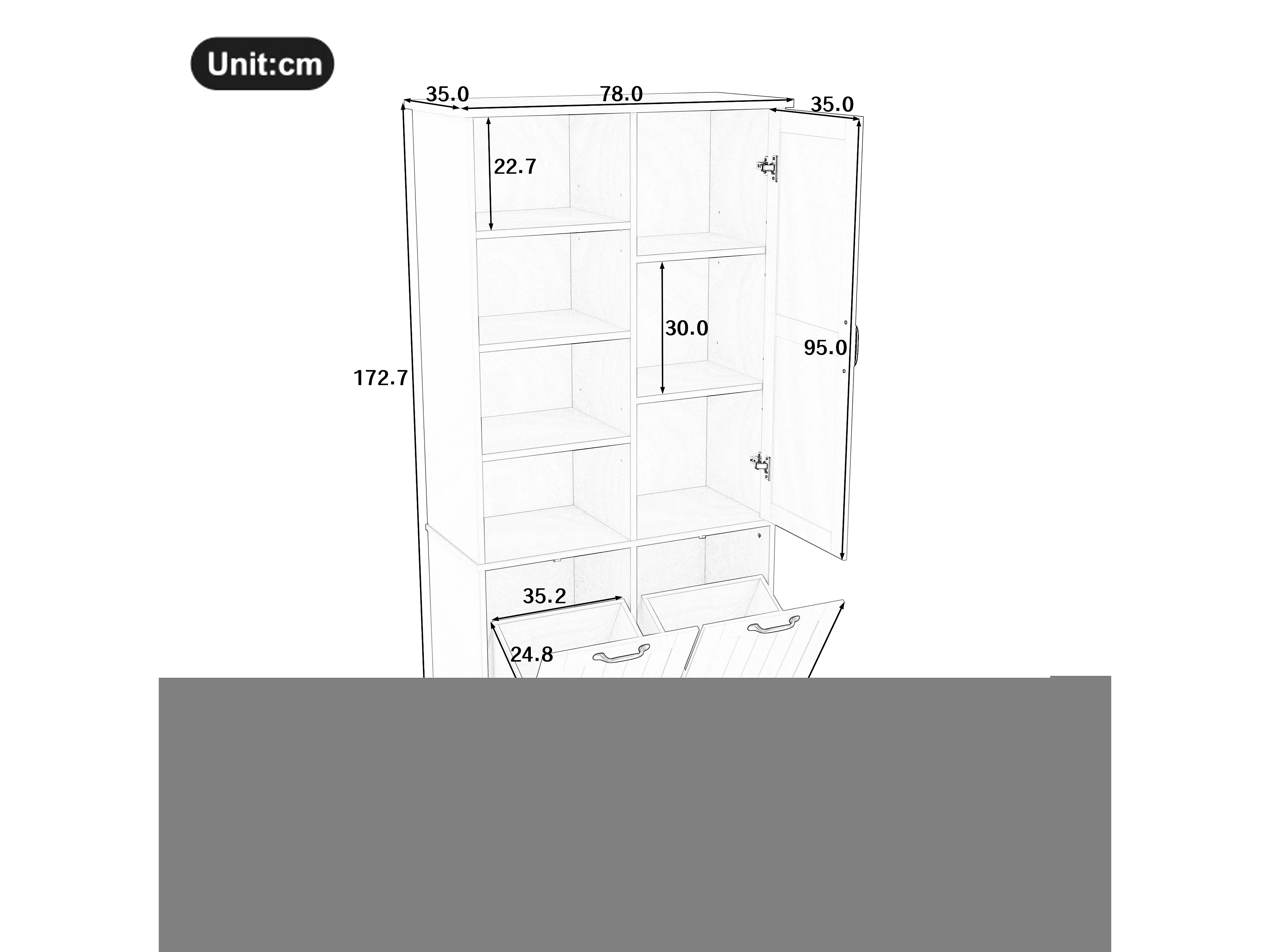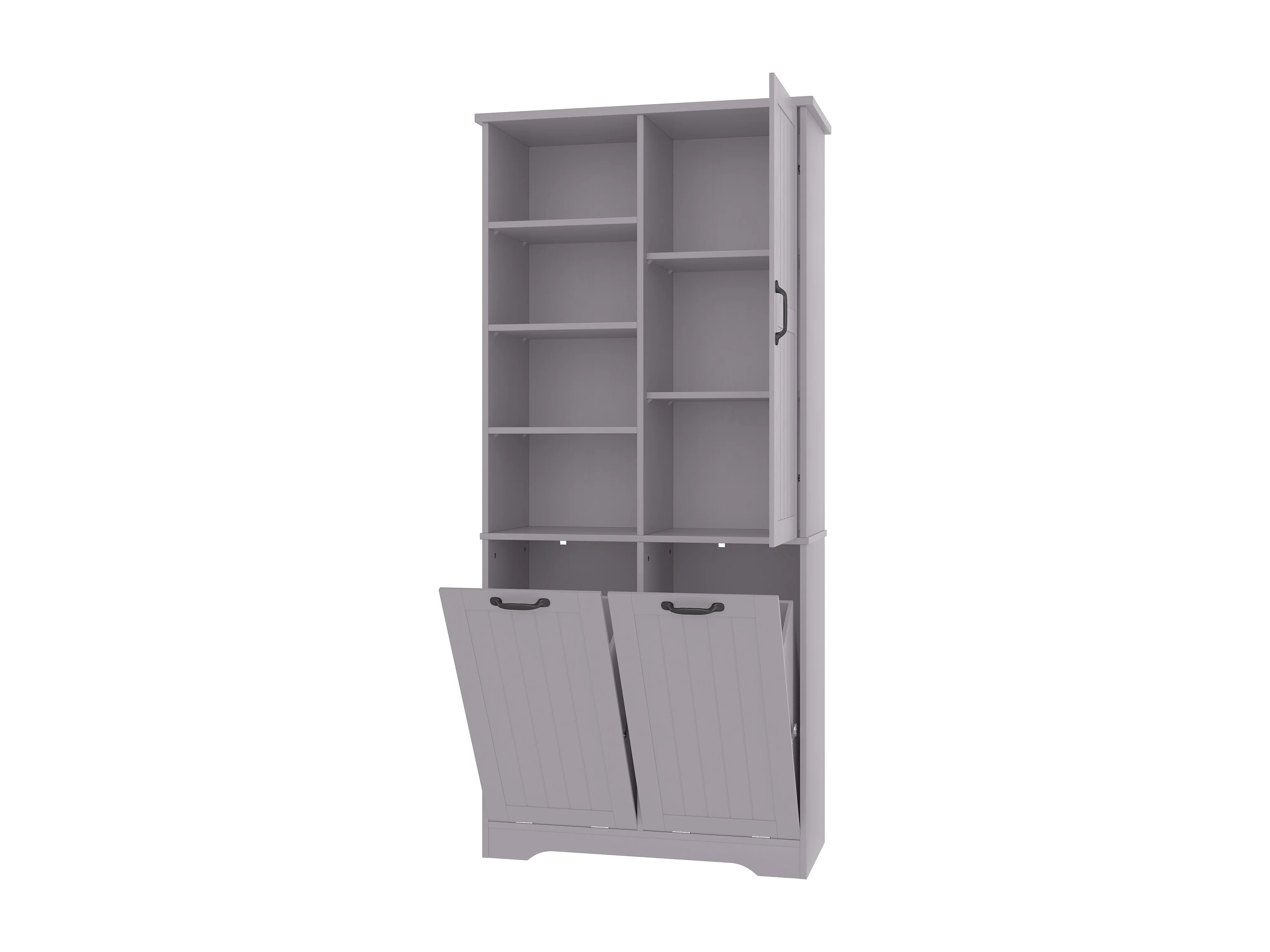 Badmeubel 78×35×172 cm - dubbele wasmand - 4 open vakken - 1 deur - grijs