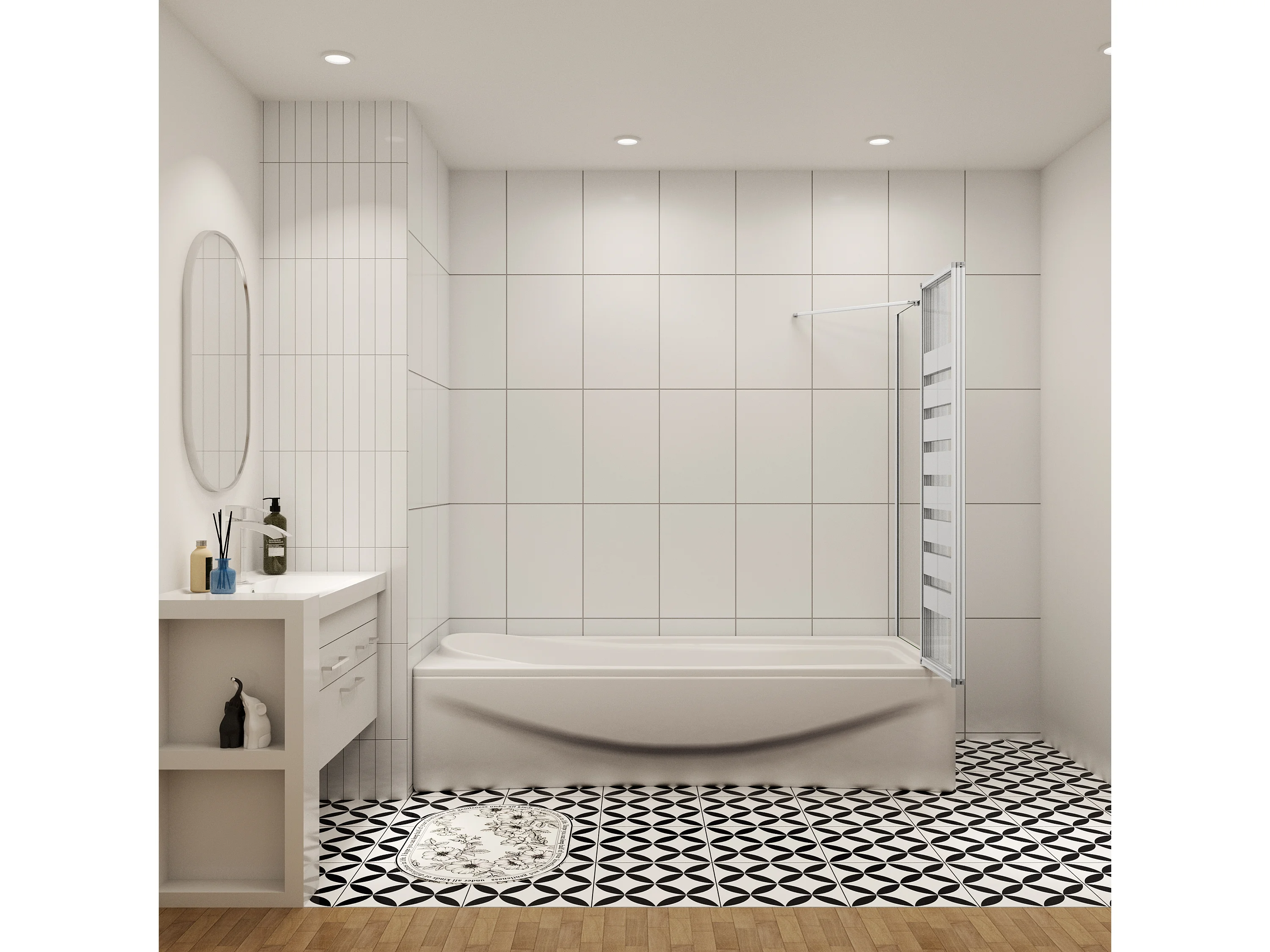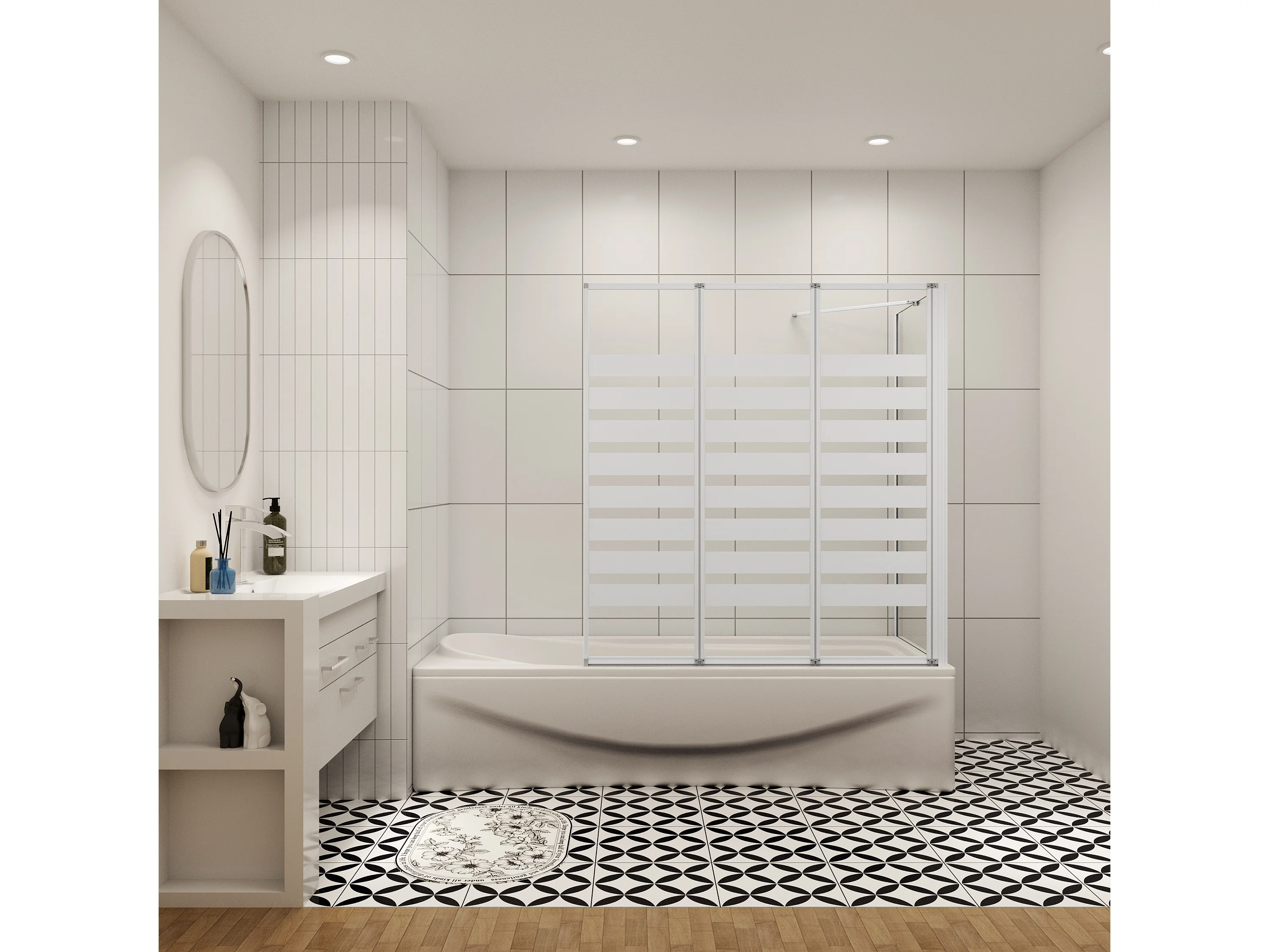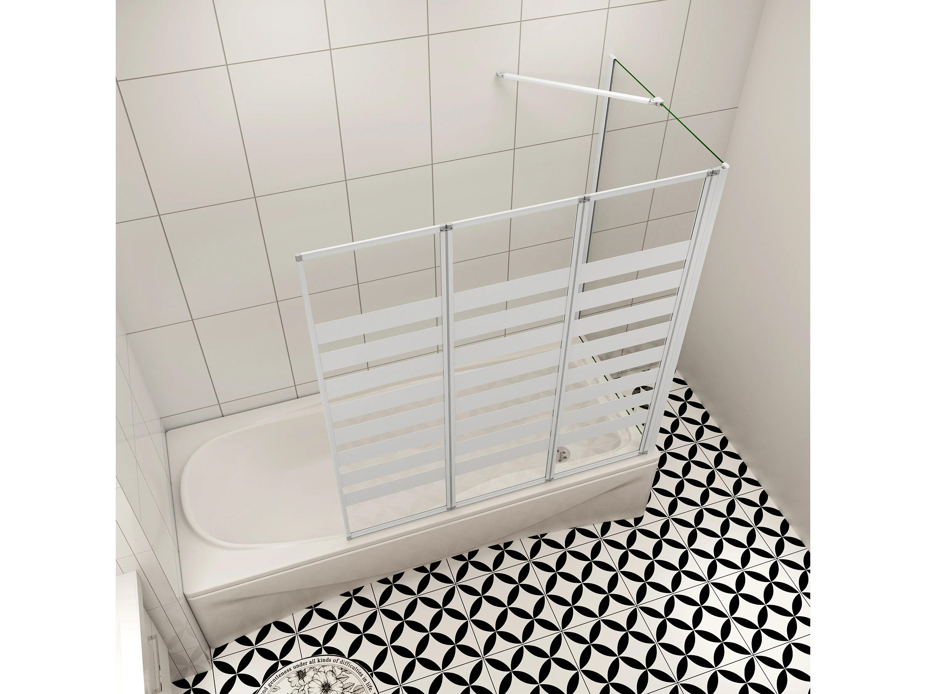 130x140cm Badwand 3-delig vouwbaar,4mm transparant veiligheidsglas met horizontale strepen - mat wit profiel