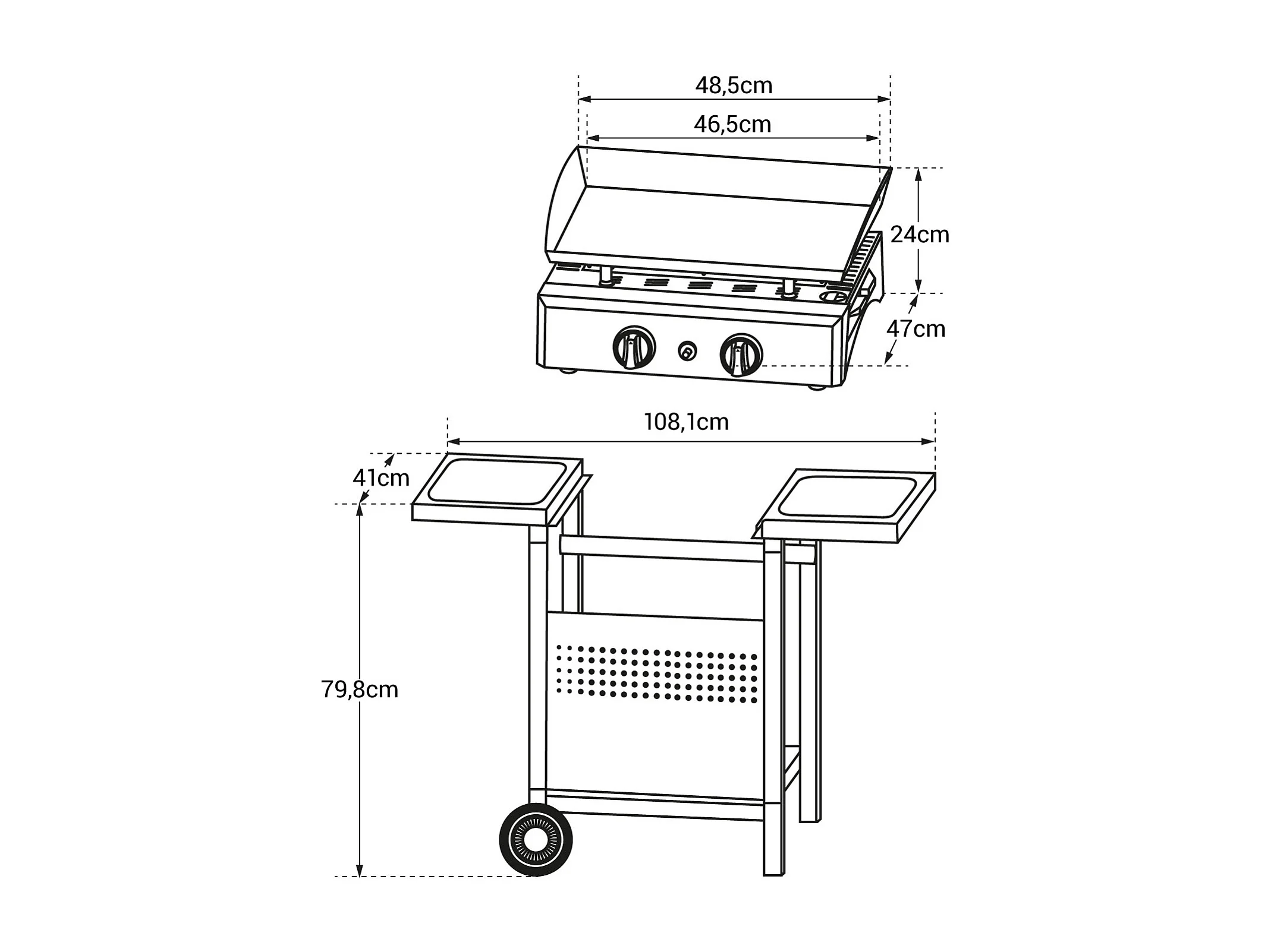 Bakplaat op gas MALA - 2 branders 5kW + wagen