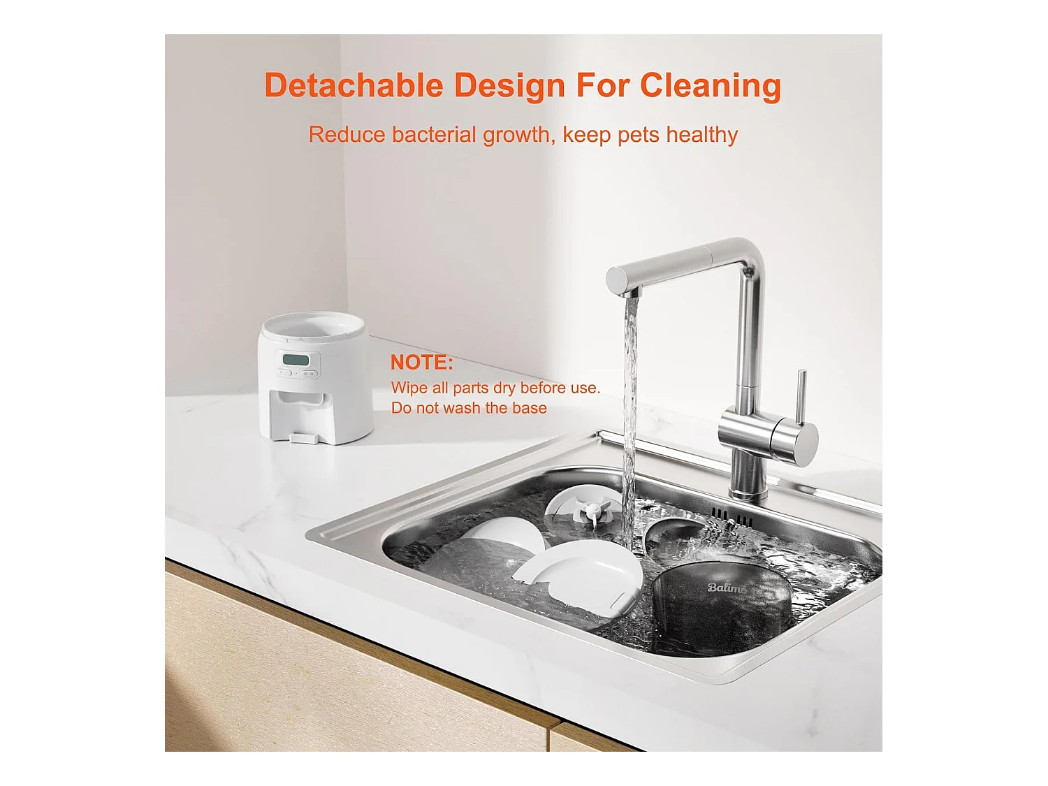 Balimo 3L Witte Kroketten Dispenser voor Kat/Hond, ,Pro TimerGrammable/Opnamefunctie,met RVS Kom,Tot 6 Maaltijden/Dag