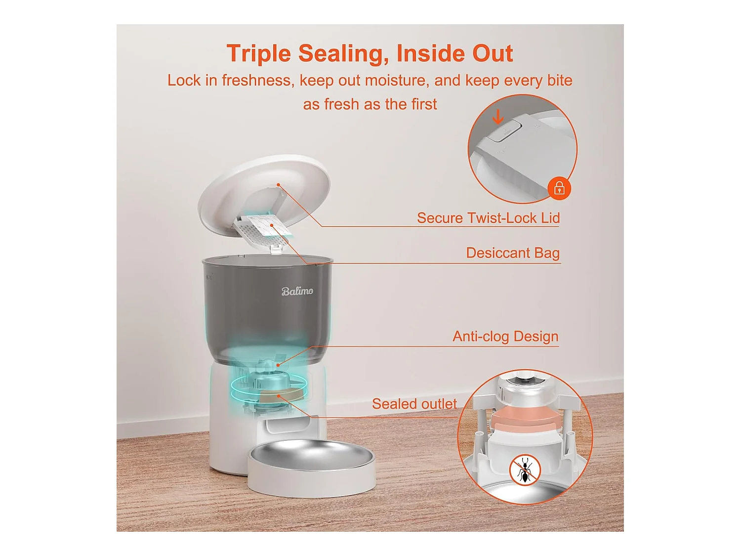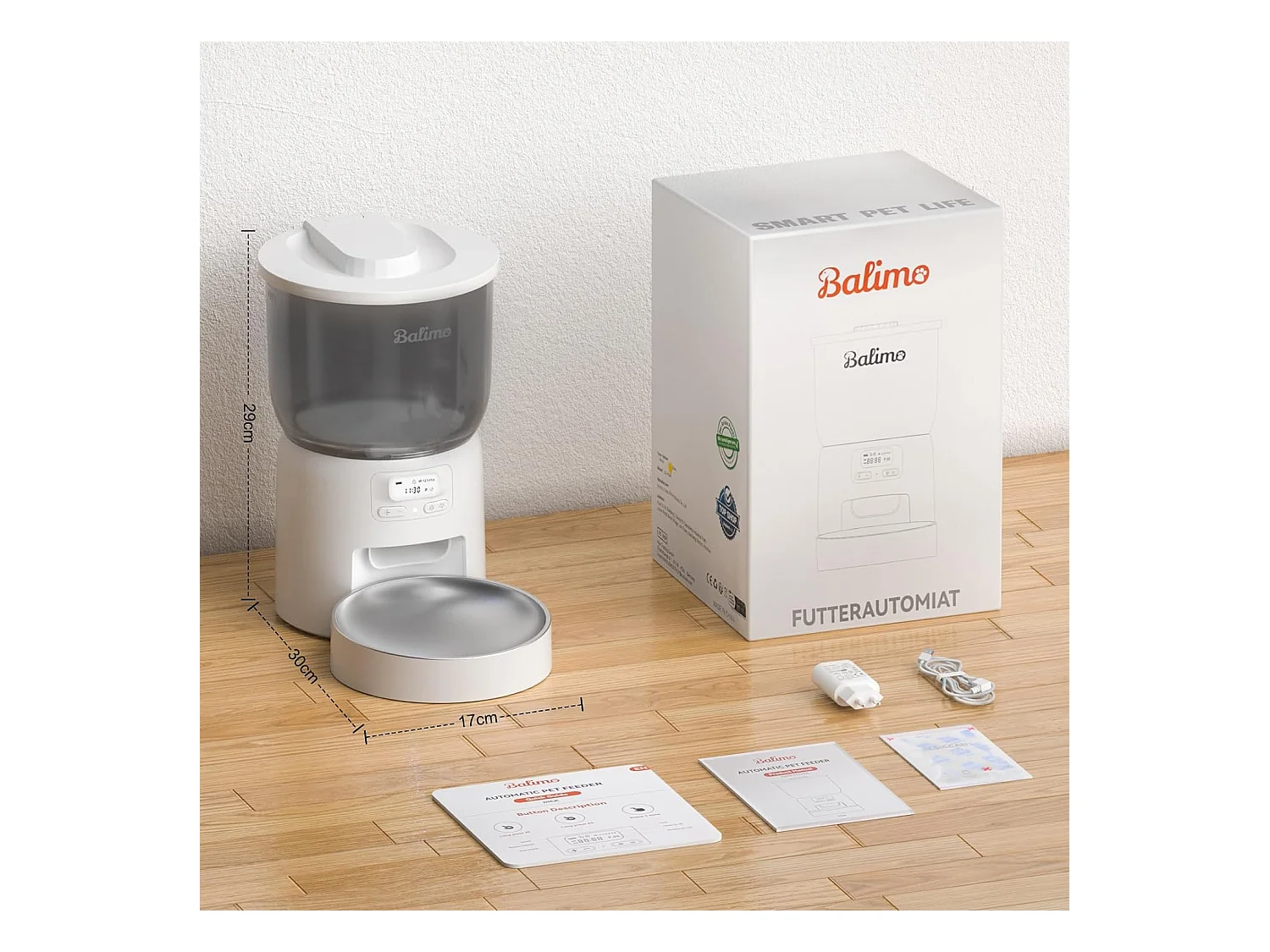 Balimo WIFI 3L Droogvoer Dispenser voor Katten/Honden Afstandsbediening Mobiele Telefoon LCD, Voedingsadapter/Batterij Adapter, Opnamefunctie