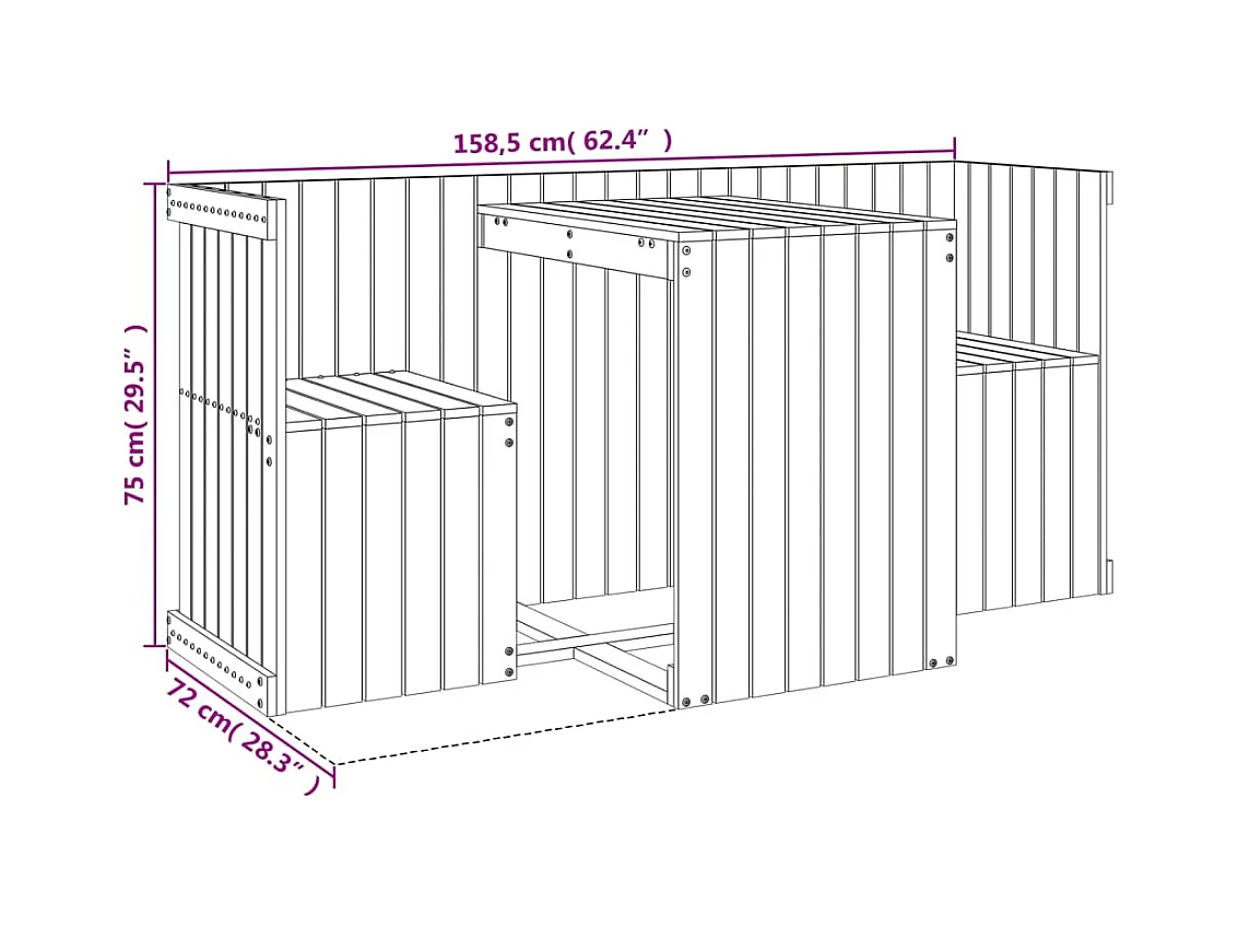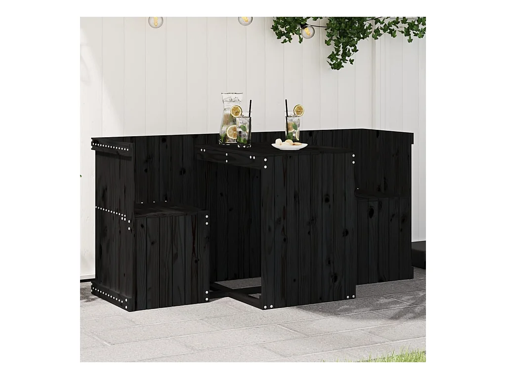 Balkonset 2-zits massief grenenhout zwart