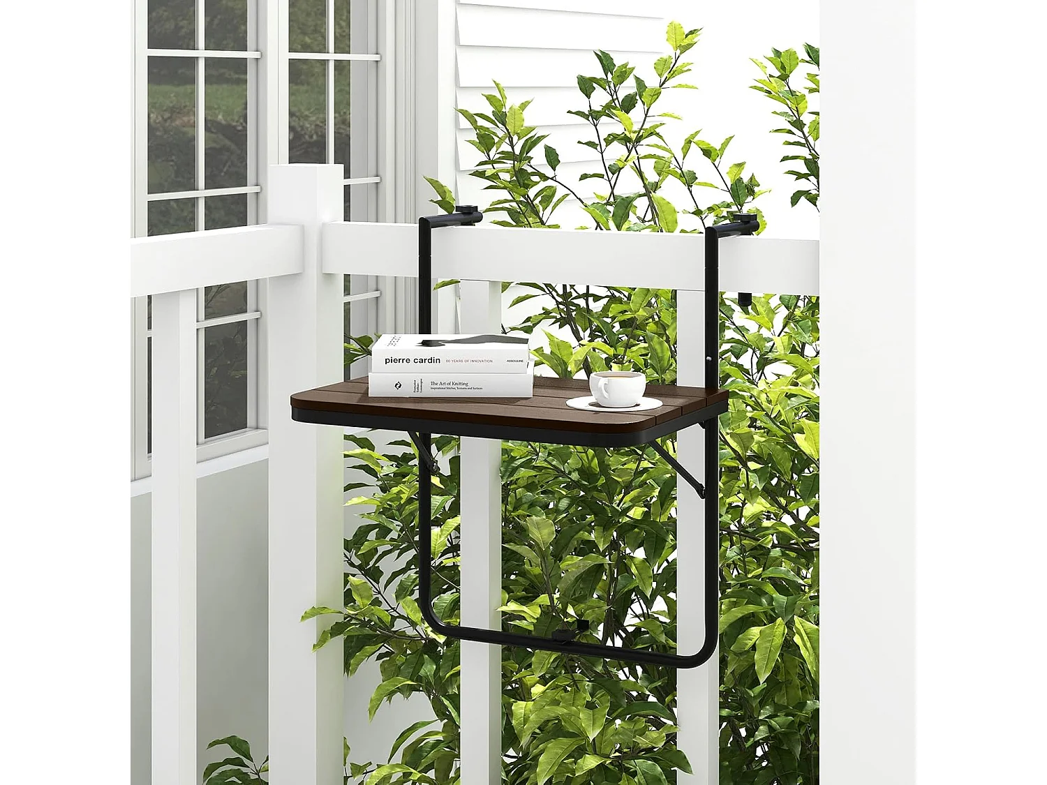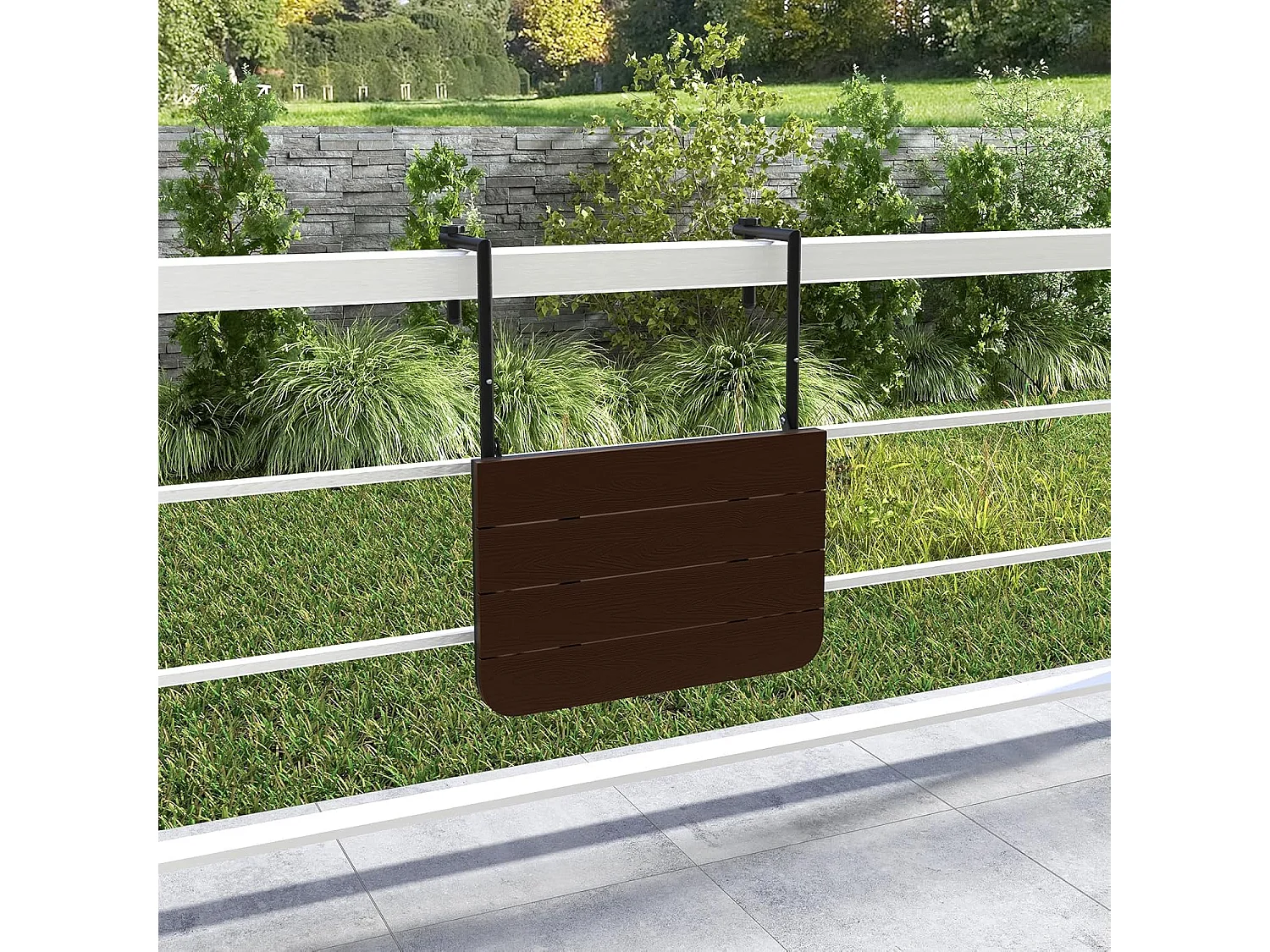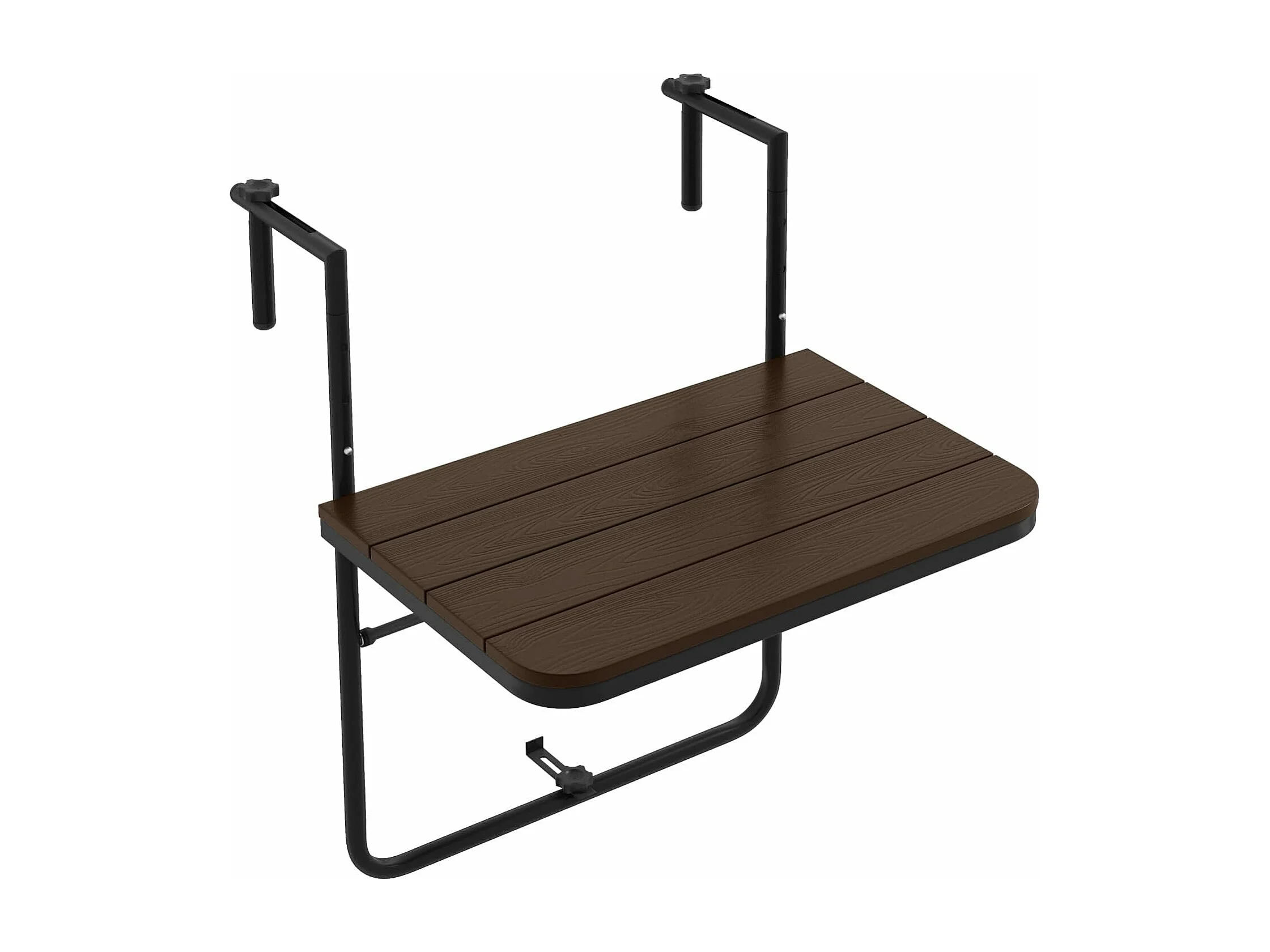 Balkontafel om op te hangen, inklapbare balkonhangtafel met 3-traps verstelbare hoogte, klaptafel, hangtafel,voor balkonleuningen, 60 x 40 cm, koffie ZB33211