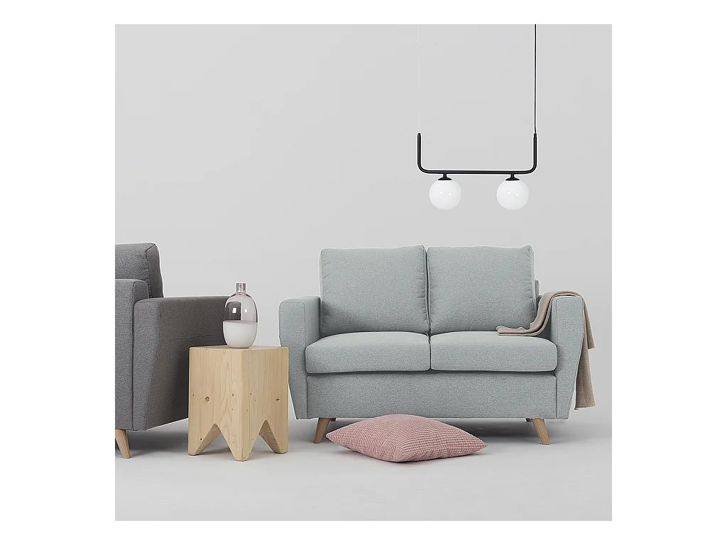 2-zitsbank in grijze fluwelen stof, 165 cm, moderne Scandinavische stijl voor woonkamer, appartement, kleine ruimte, massief houten poten, 168x88x75