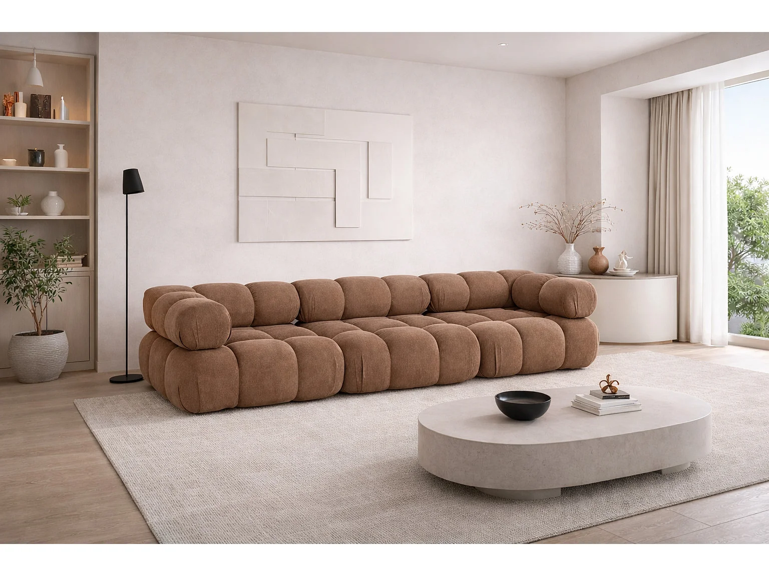 Bank, 3-zits modulair, veloursstof Salvador, donkerbeige, Selia