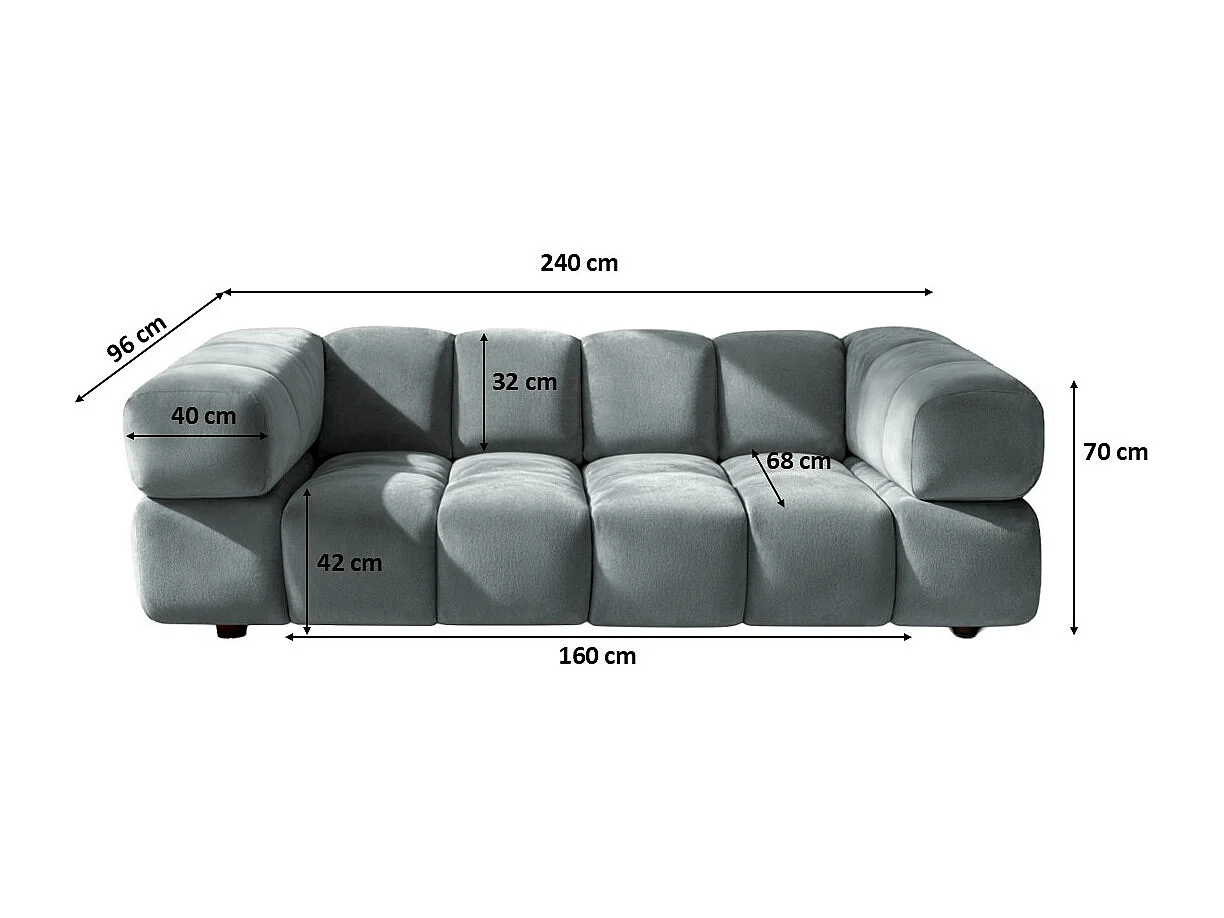 Bank 3-zits, Veloursstof Bluvel, Blauwgrijs, Averro