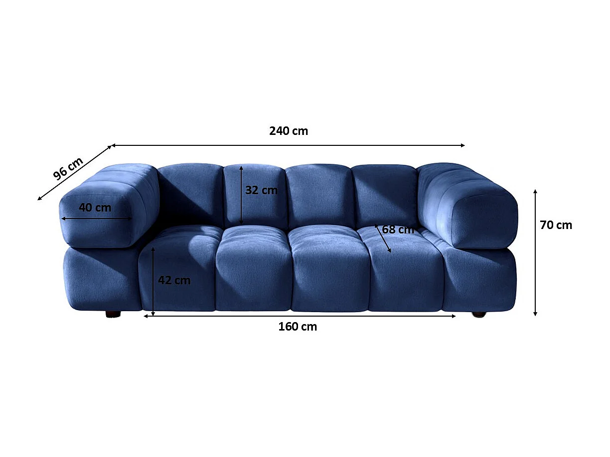 Bank 3-zits, Veloursstof Bluvel, Inktblauw, Averro