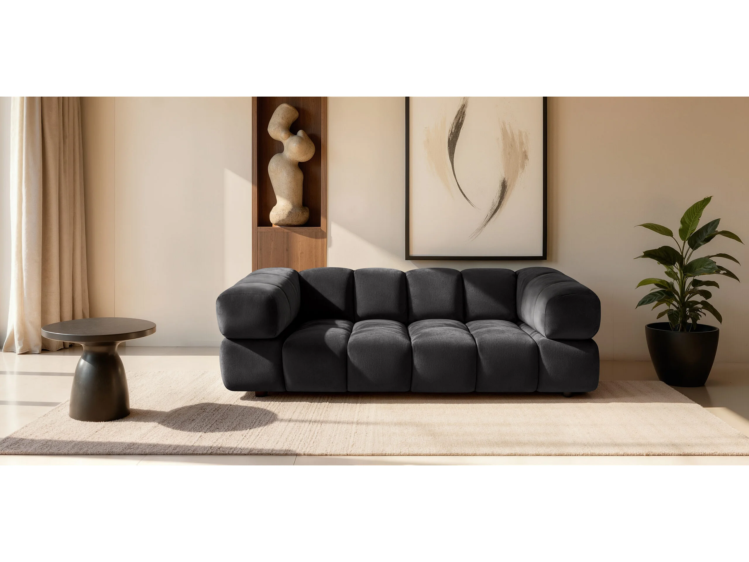 Bank 3-zits, Veloursstof Bluvel, Zwart, Averro
