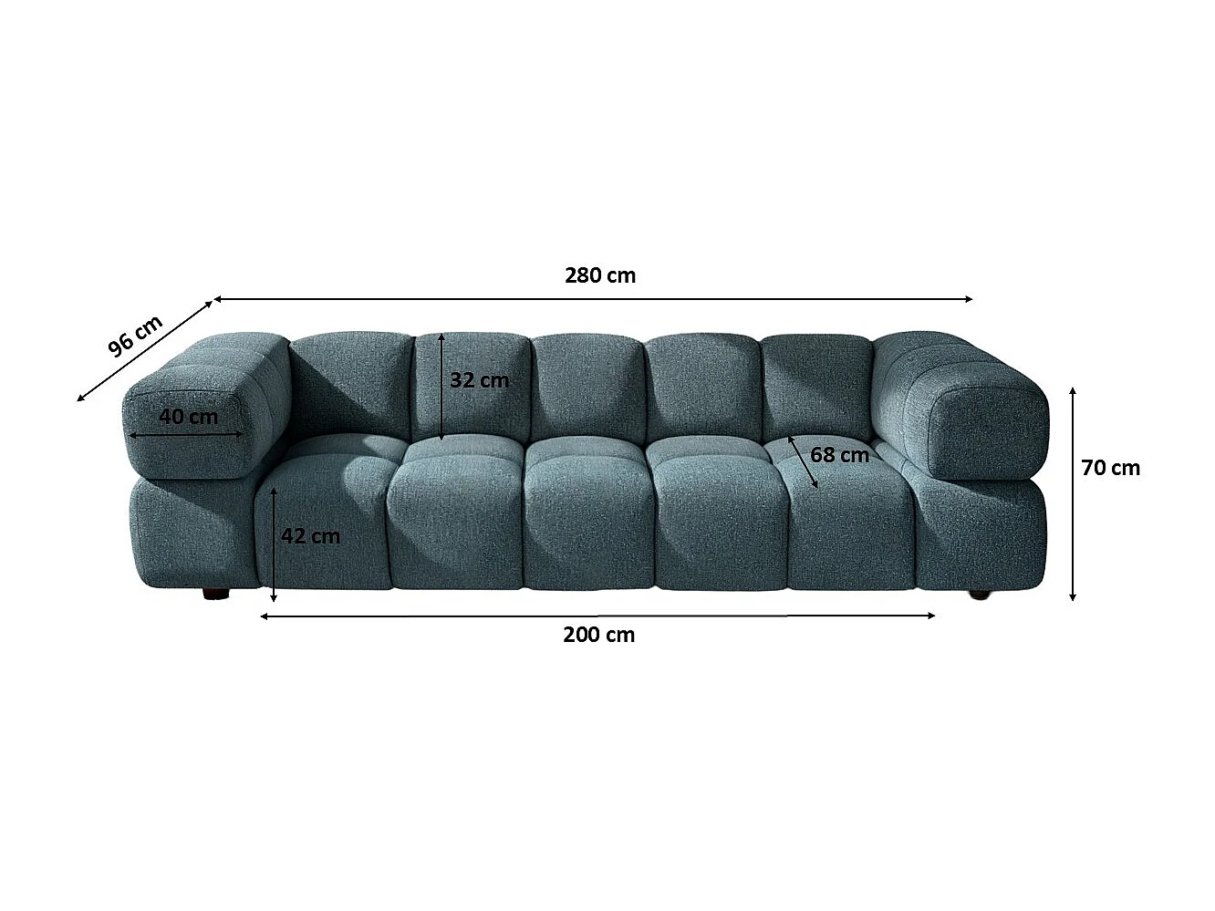 Bank 4-zits, Chenille stof Puente, Petrol, Averro