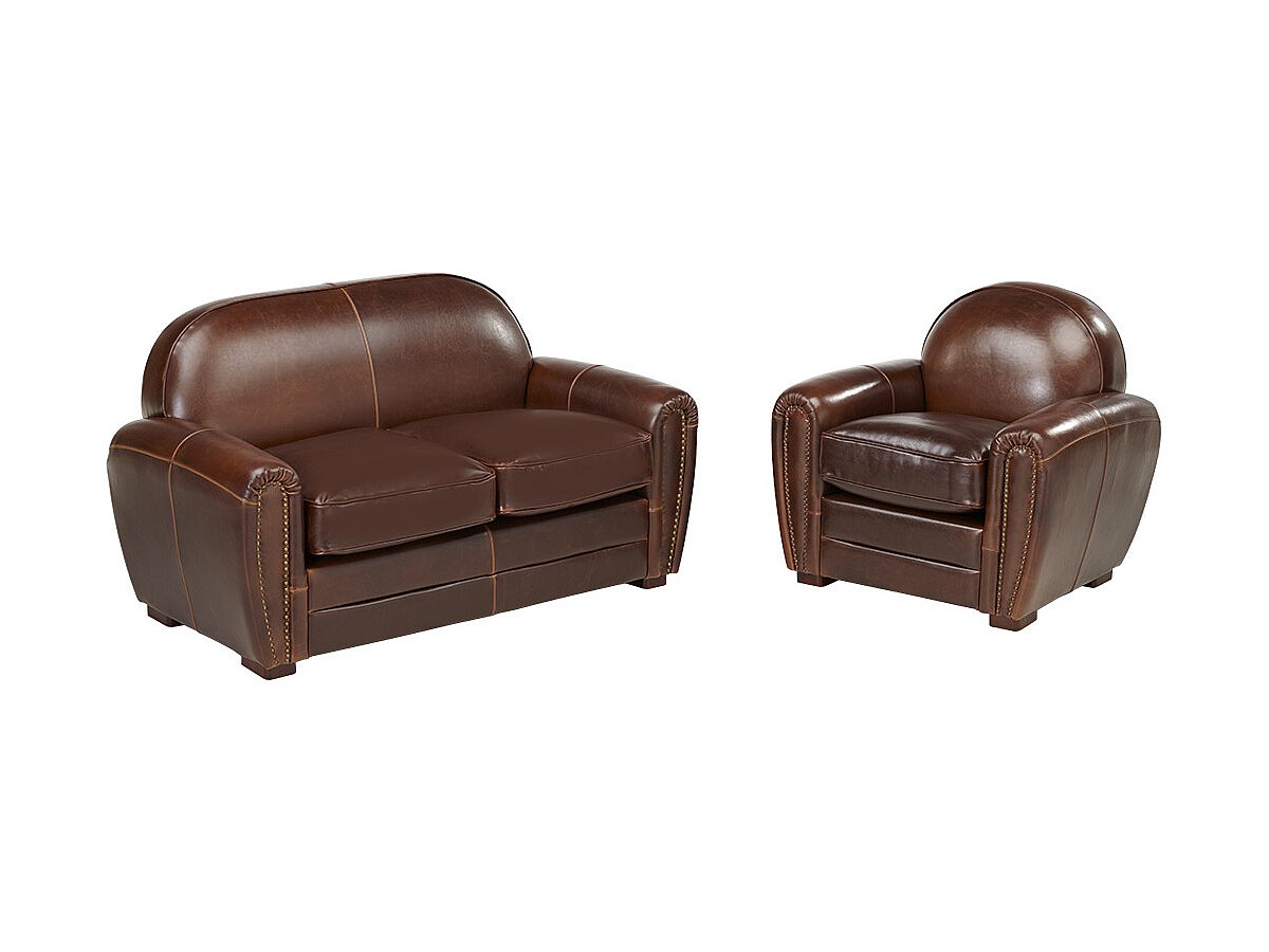 Zitbank en club fauteuil BAUDOIN van leer met lived-in aspect - Chocoladebruin