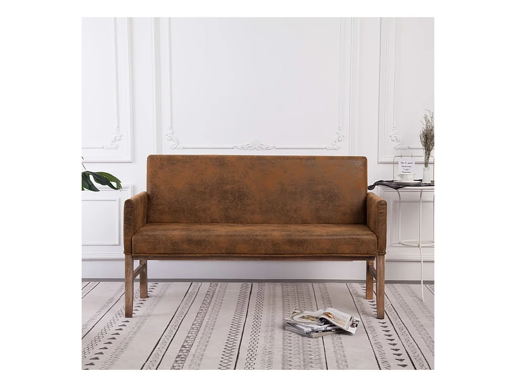 Bank met armleuning 140 cm Bruin Suède kunstleer