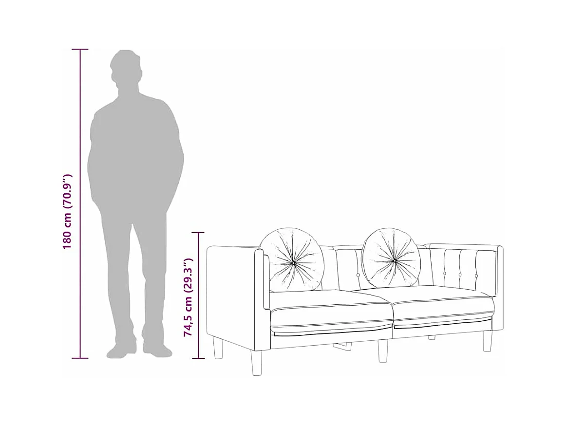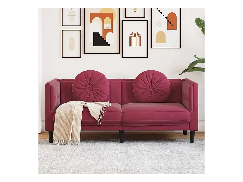 Driezitsbank met sierkussens 180 cm kunstleer wijnrood