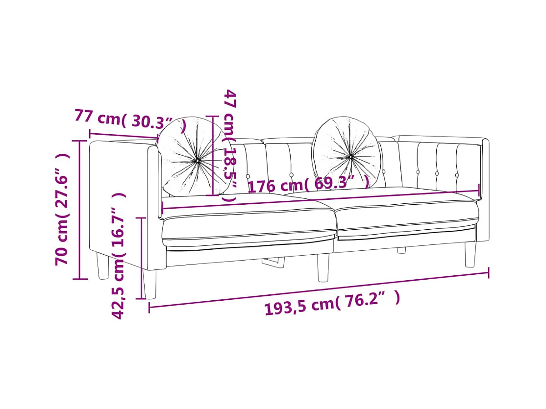 Driezitsbank met sierkussens 180 cm fluweel roze