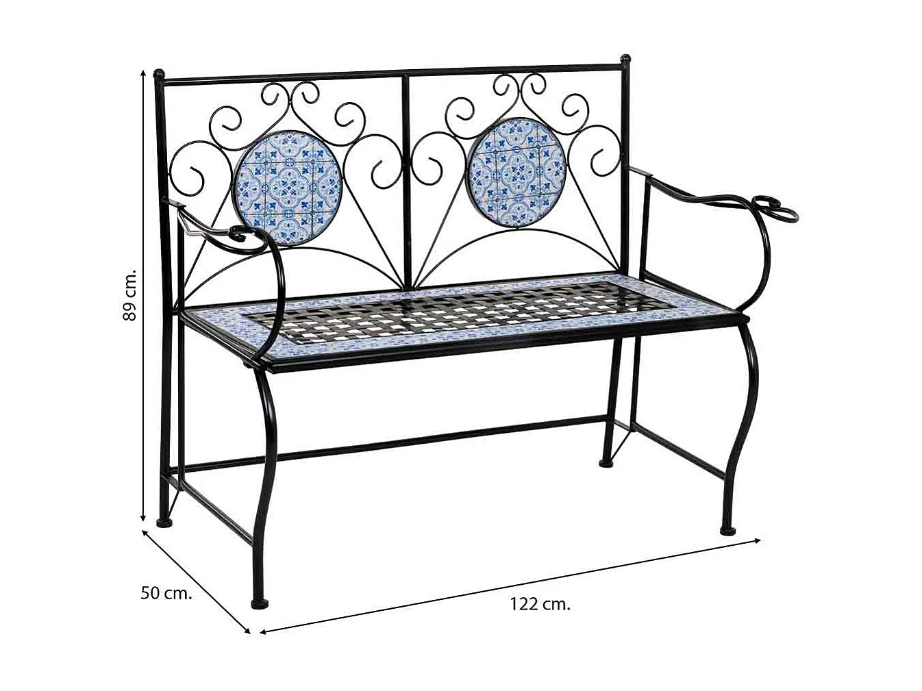 Bank van zwart mozaïek en smeedijzer