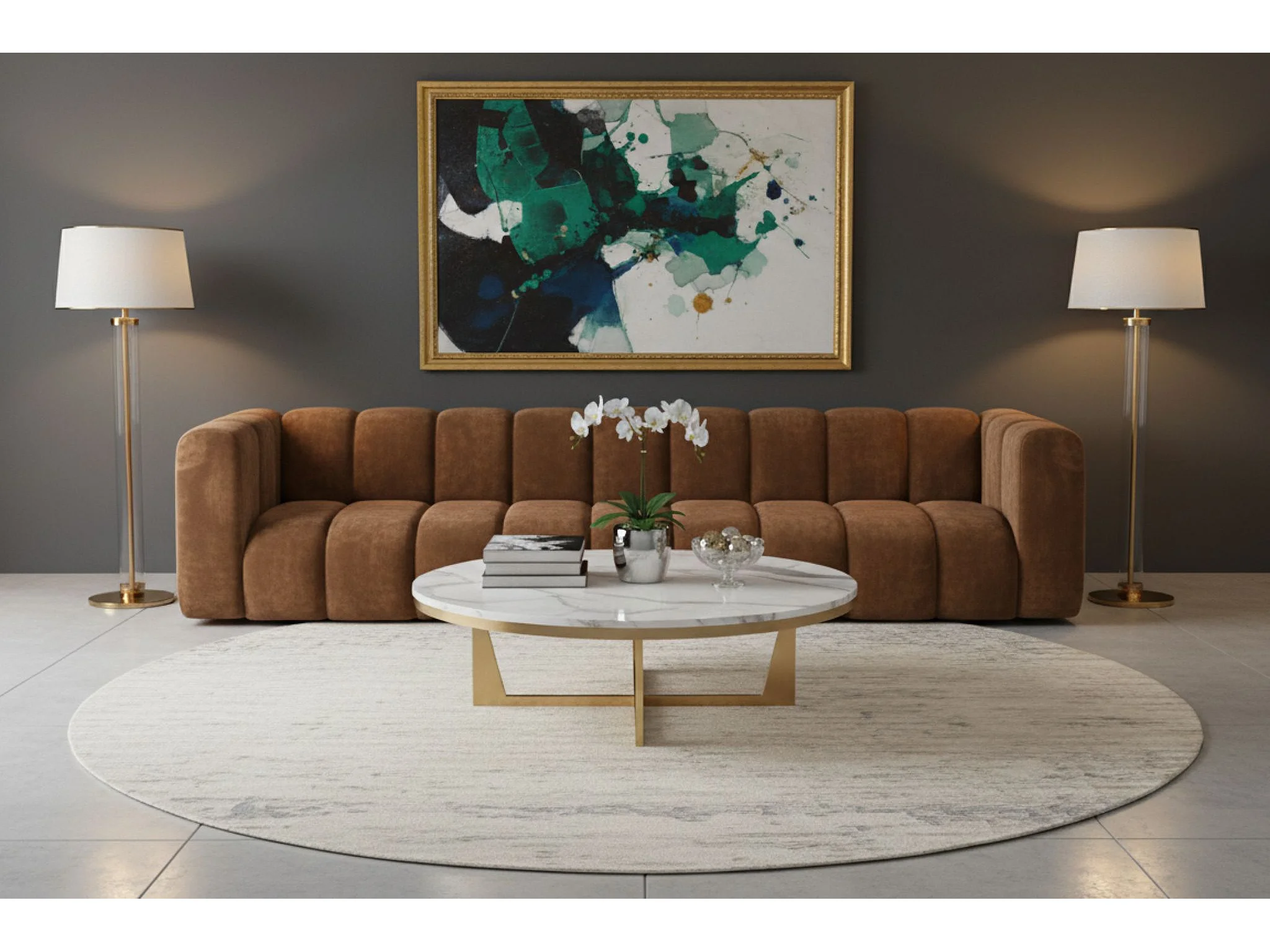Bank, Vijfzitsbank Grand, Veloursstof Salvador, Donkerbruin