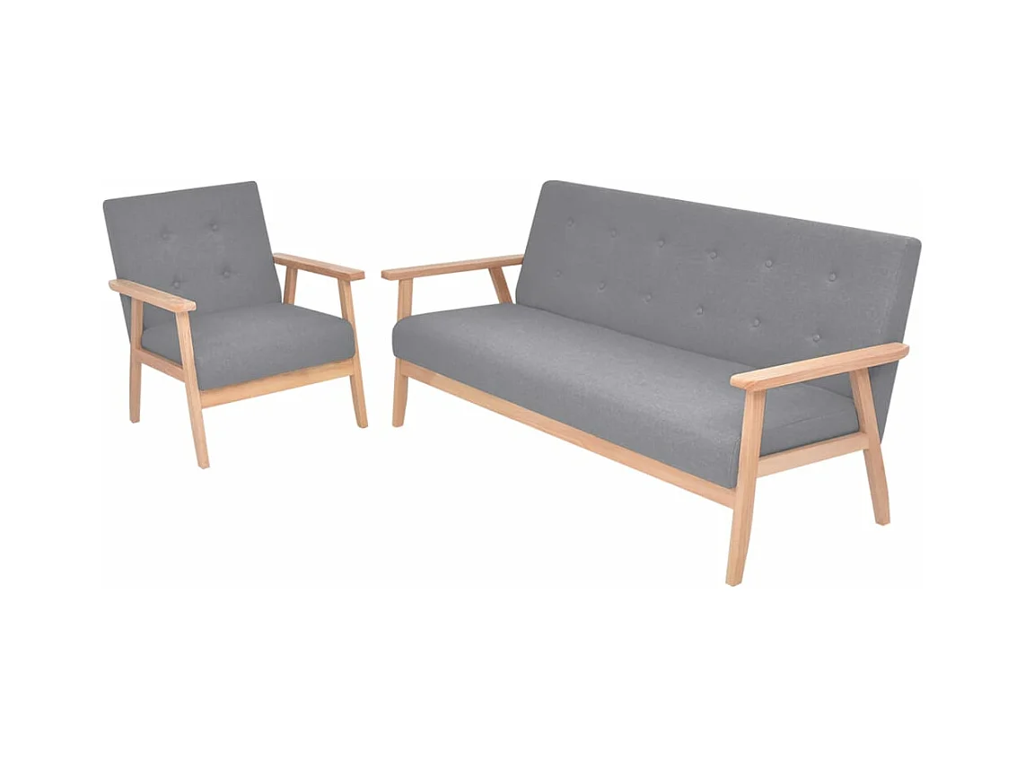 3-delige Loungeset met kussens fluweel lichtgrijs