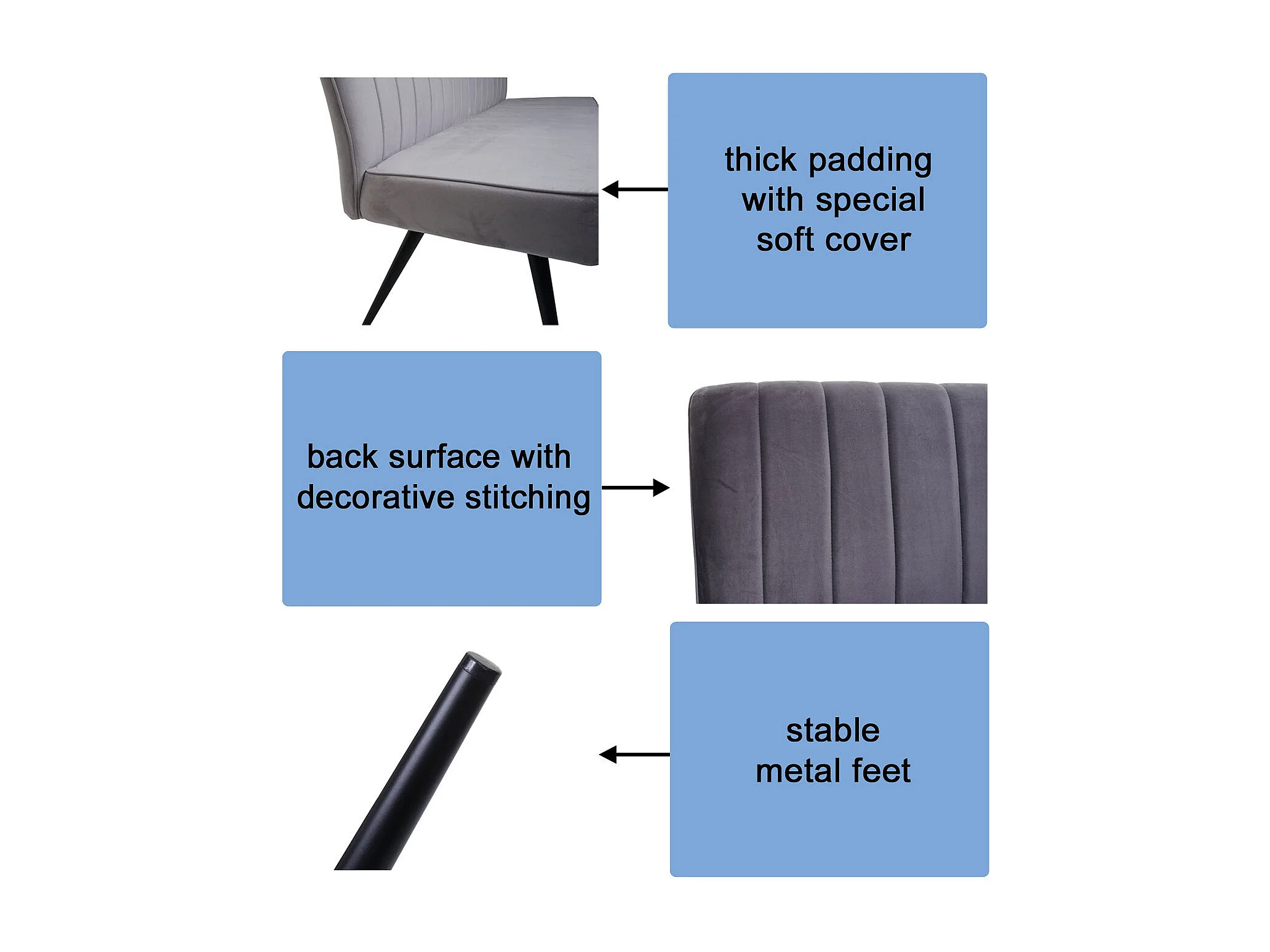 Bank MCW-K16, 160cm lichtgrijs