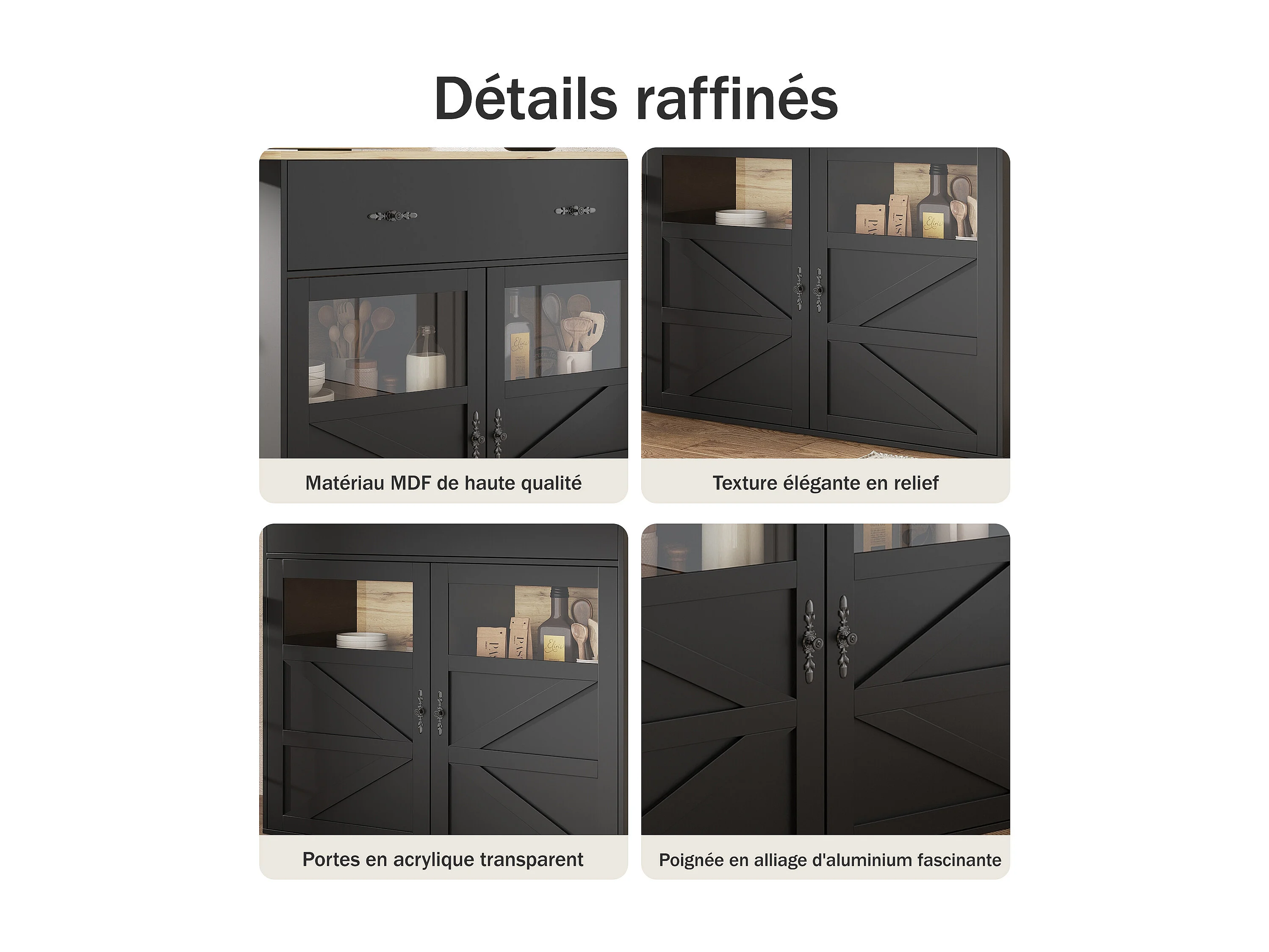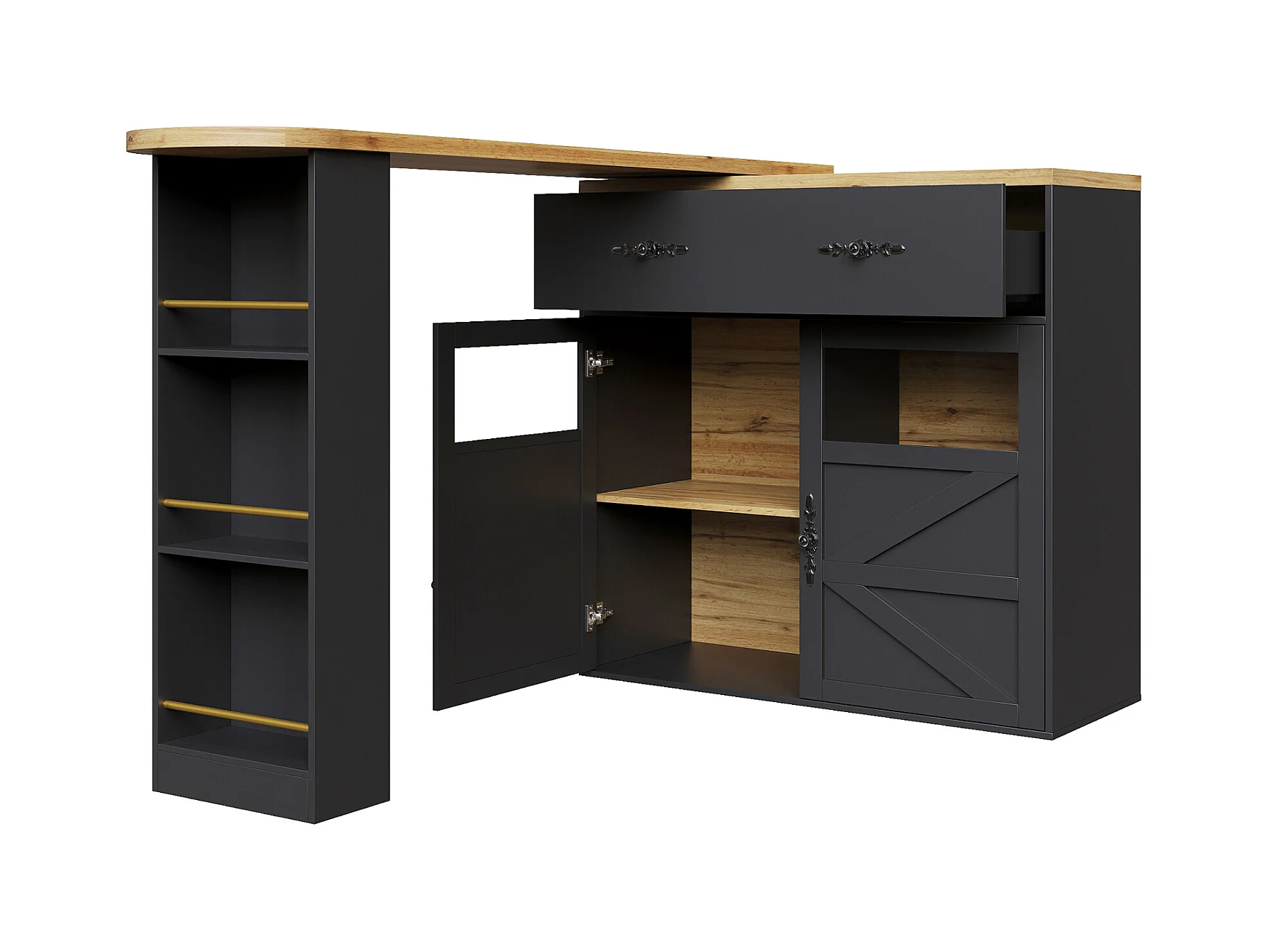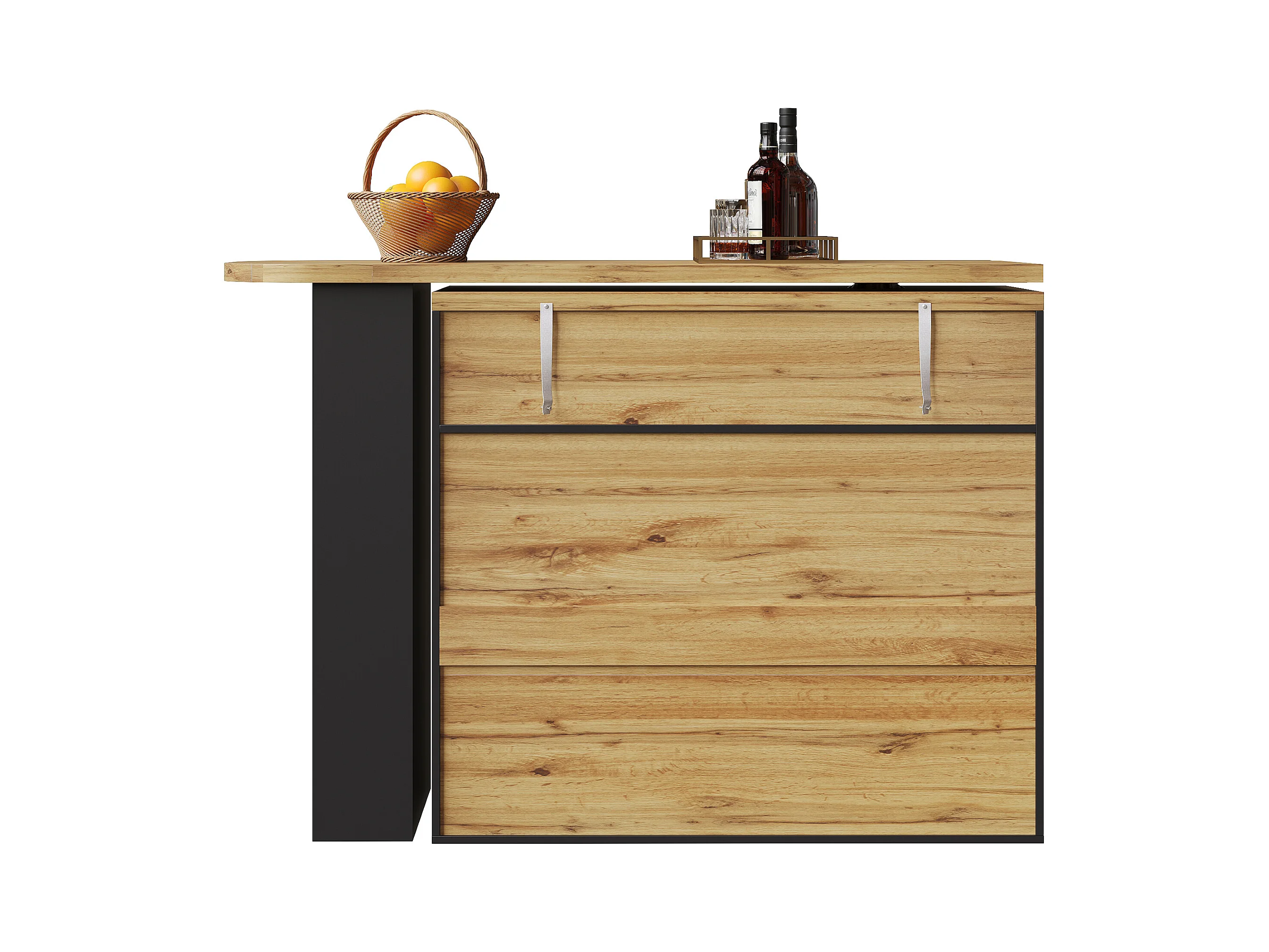 Bar dressoir - uitschuifbaar opbergmeubel met lades en 360° draaibaar, Zwart, 138-204x39x104 cm