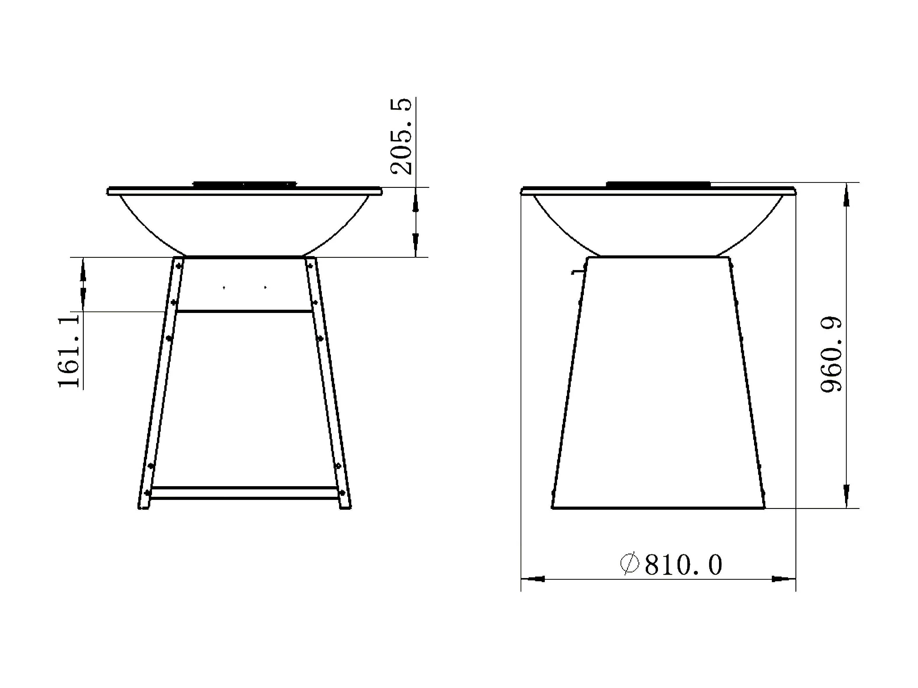 Barbecue/plancha/vuurkorf van staal - L81 x B81 x D96 cm - Zwart - CORVERA
