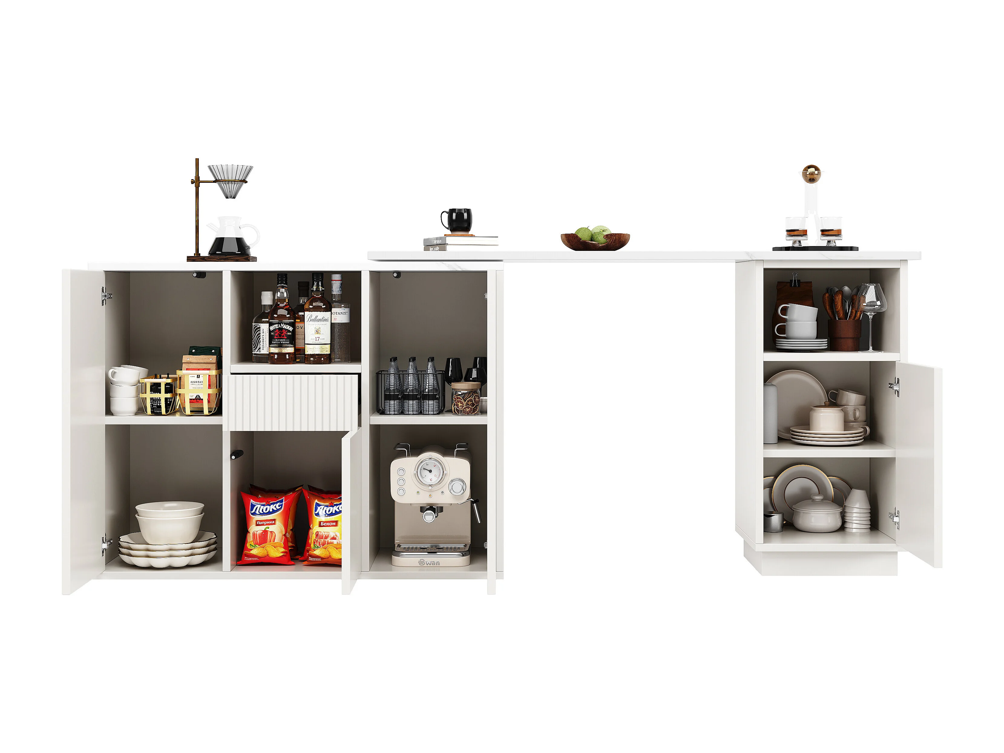 Moderne uitschuifbare bartafel - 118-180 x 50 x 94cm - met 4 deuren - voor eetkamer - MDF - wit