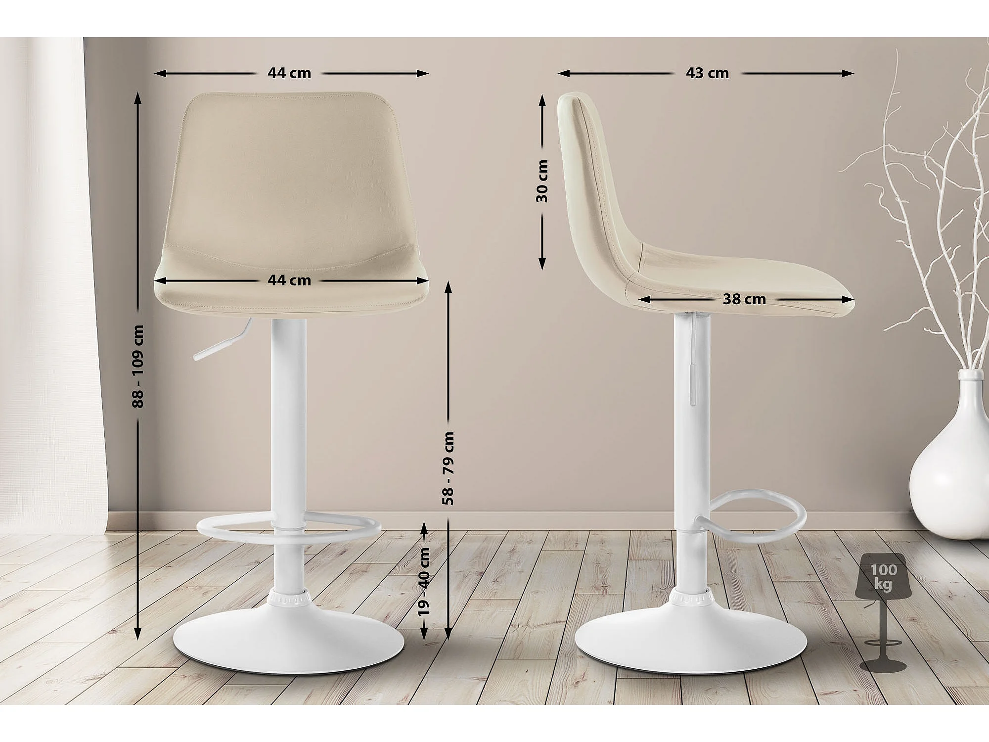 Barkruk - Kunstleer & Metaal - creme - Divo