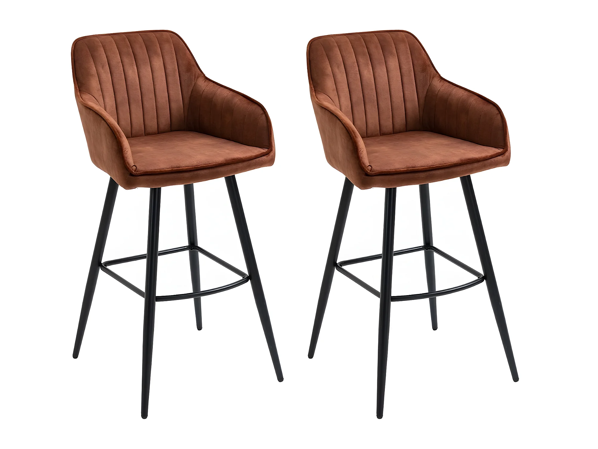 Barstoelen met rugleuning, voetenbankje, draaibaar, chenille stof, metalen frame, bruin (42x47x105 cm)