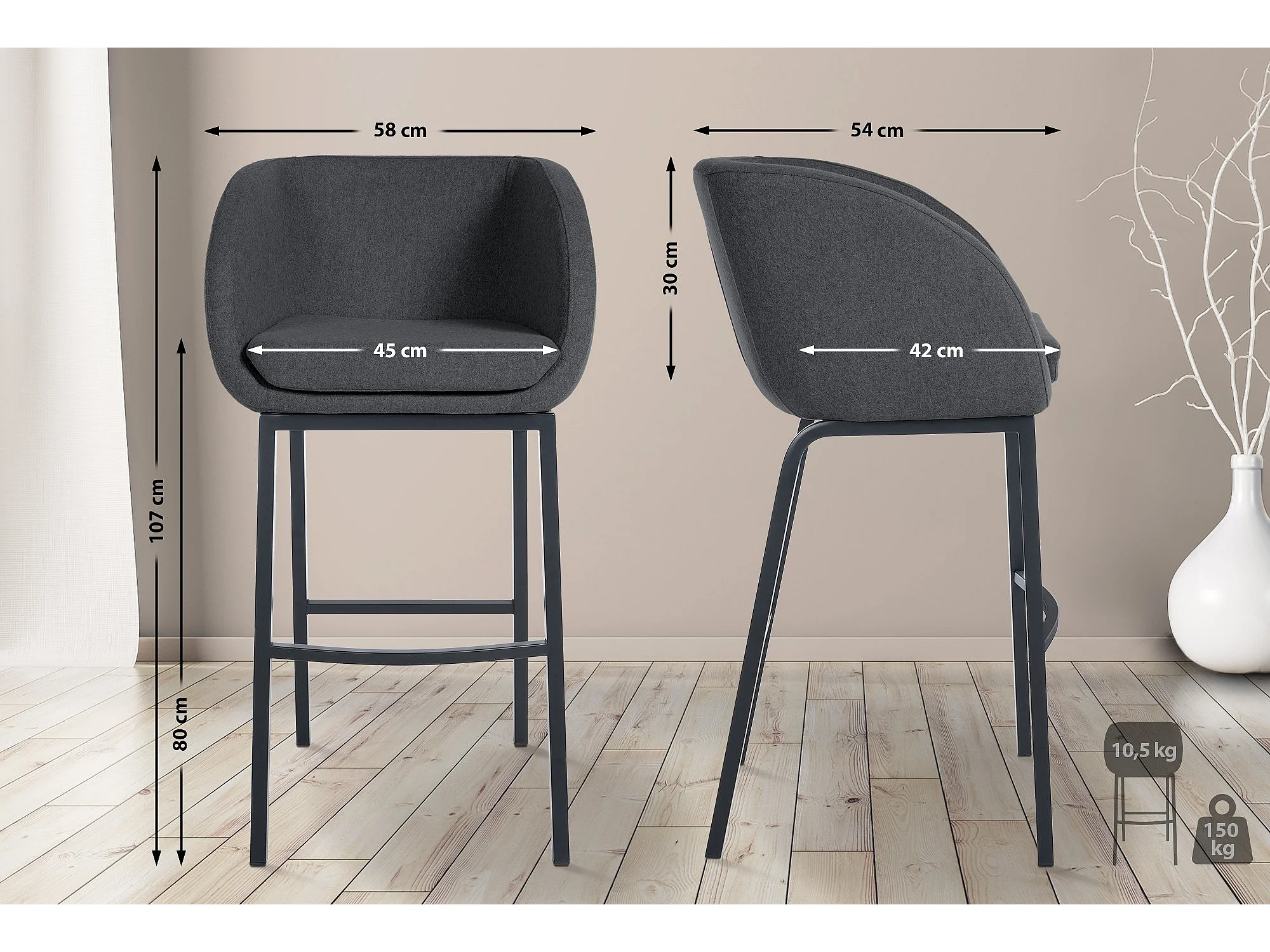 Barkruk - Vilt & Roestvrij staal - grijs - Rockhill