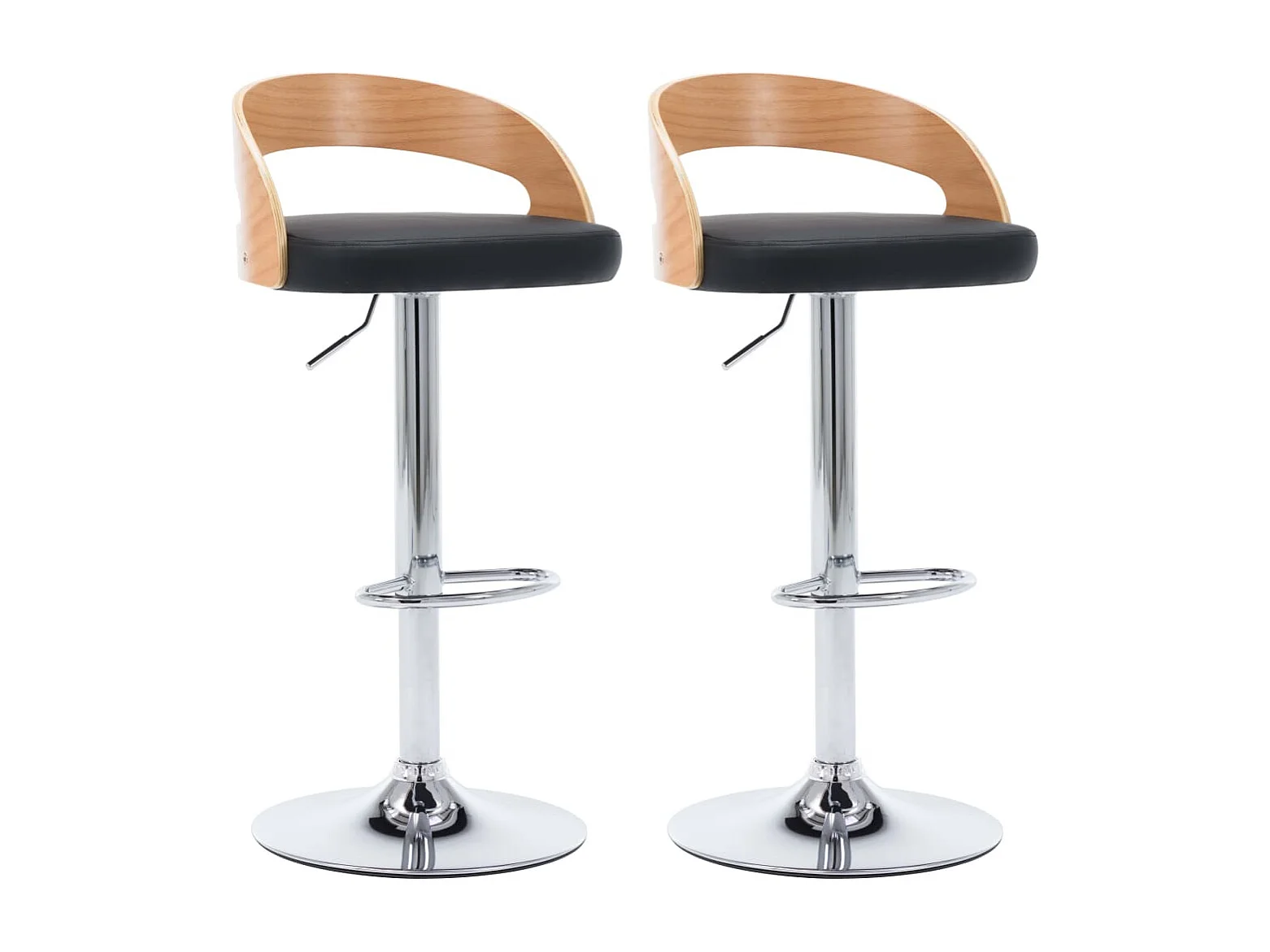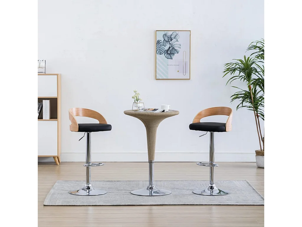 Barkrukken 2 st kunstleer en gebogen hout zwart
