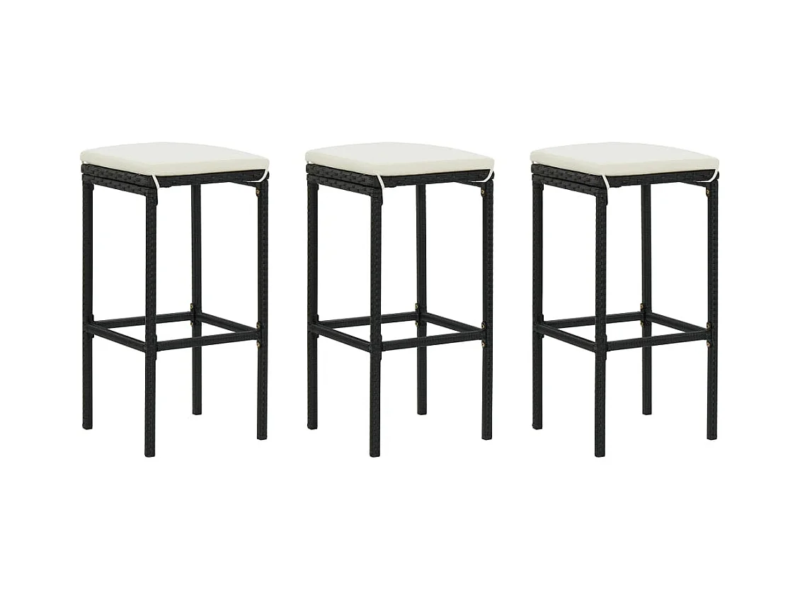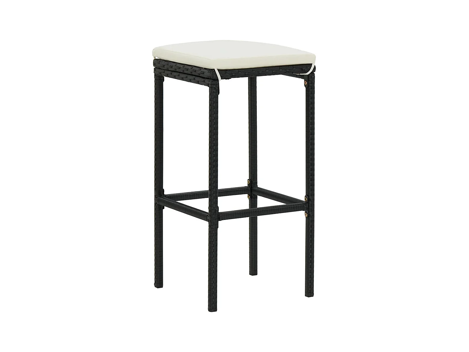 Barkrukken met kussens, set van 2, zwart, geweven hars